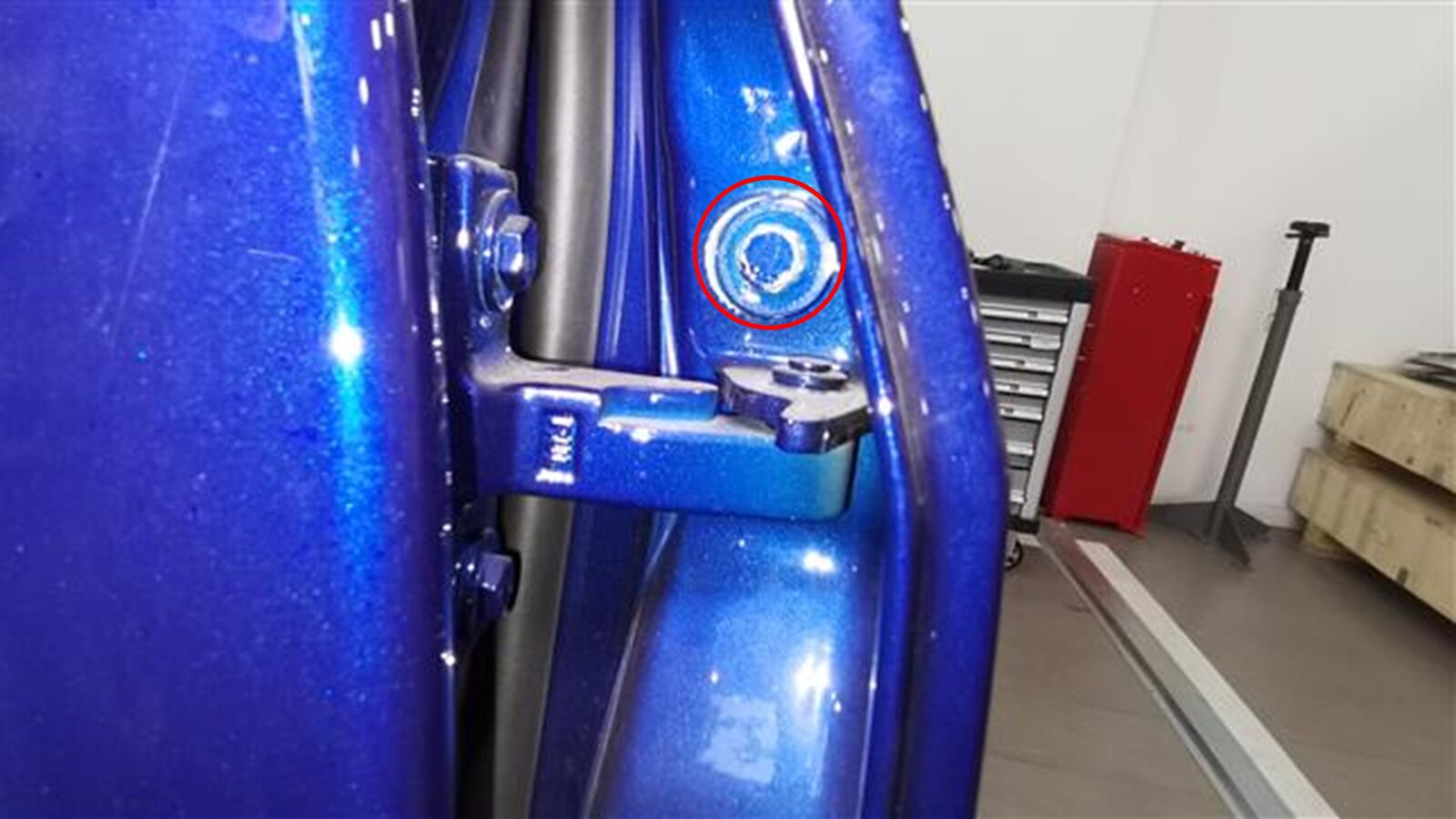 LH upper rear door hinge to the body.