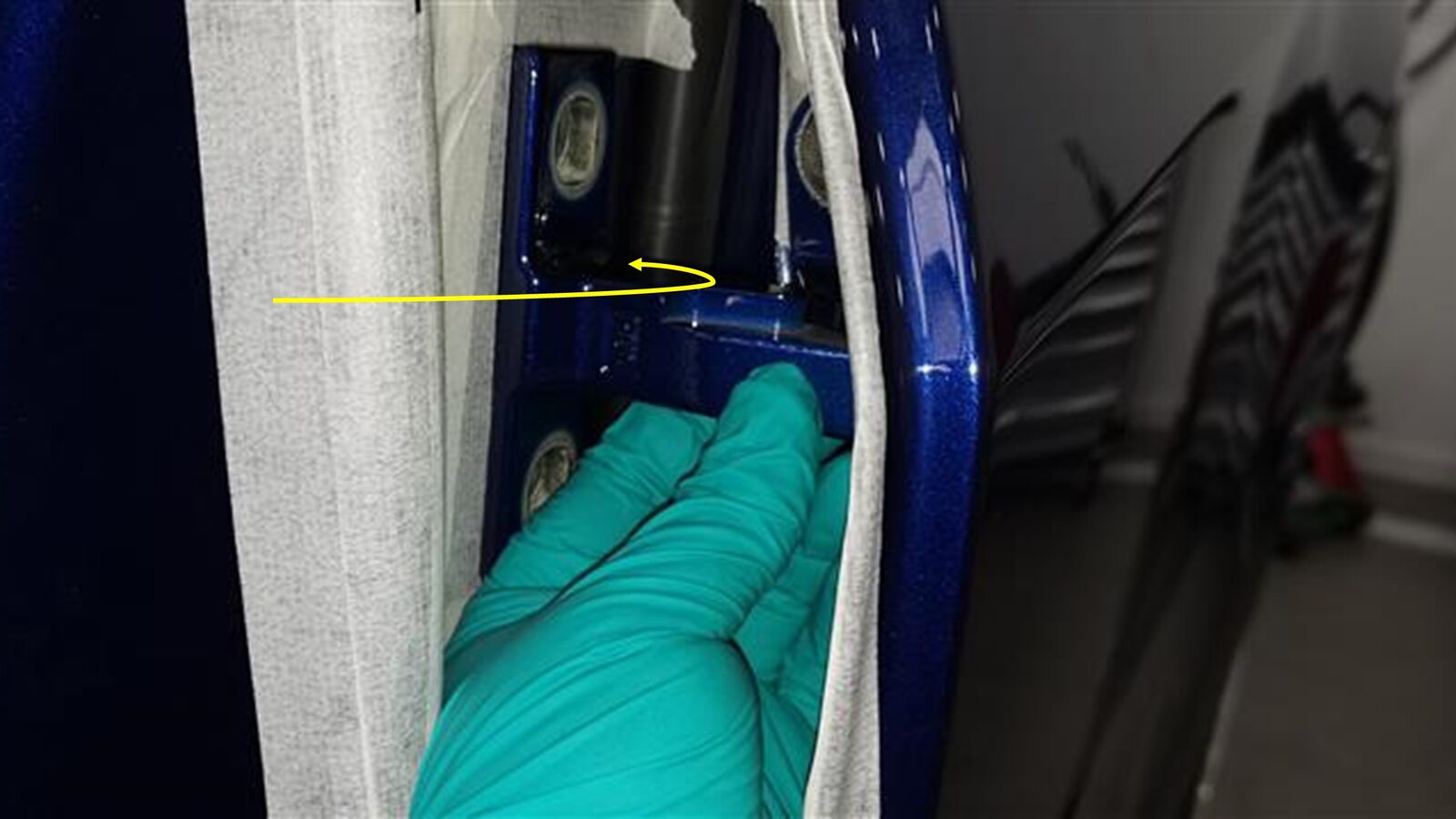 - Hand-tighten the bolts (x2) that attach the hinge to the body.