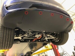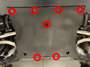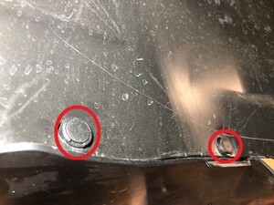 Apply Loctite 222 onto front aero shield bolts and install outer fasteners to front aero shield