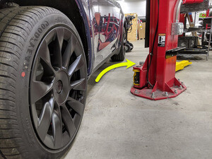 NoteEnsure vehicle is not charging before lifting it off the ground, Set air suspension to "Jack Mode" if equipped