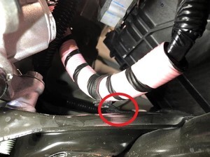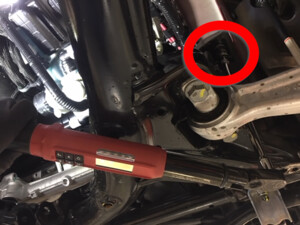 Torque the RH smaller bolt securing the rear portion of the front subframe to body