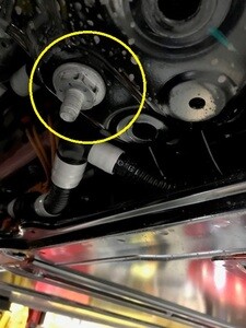 - Remove the bolt that attaches the LH front brake rotor to the hub.