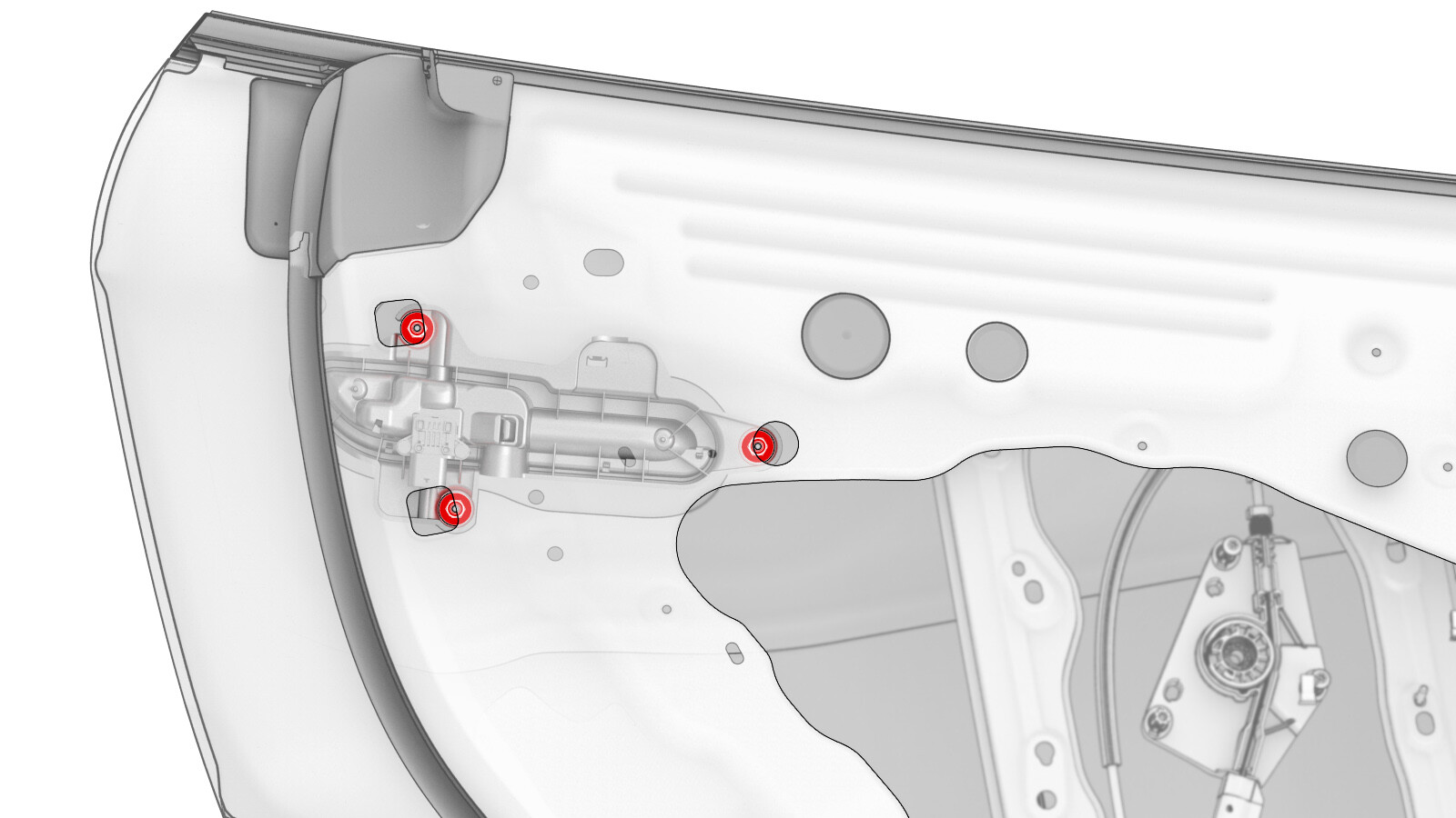 - Remove the LH rear window regulator. See Window Motor / Regulator Assembly - Rear - LH (Remove and Replace).