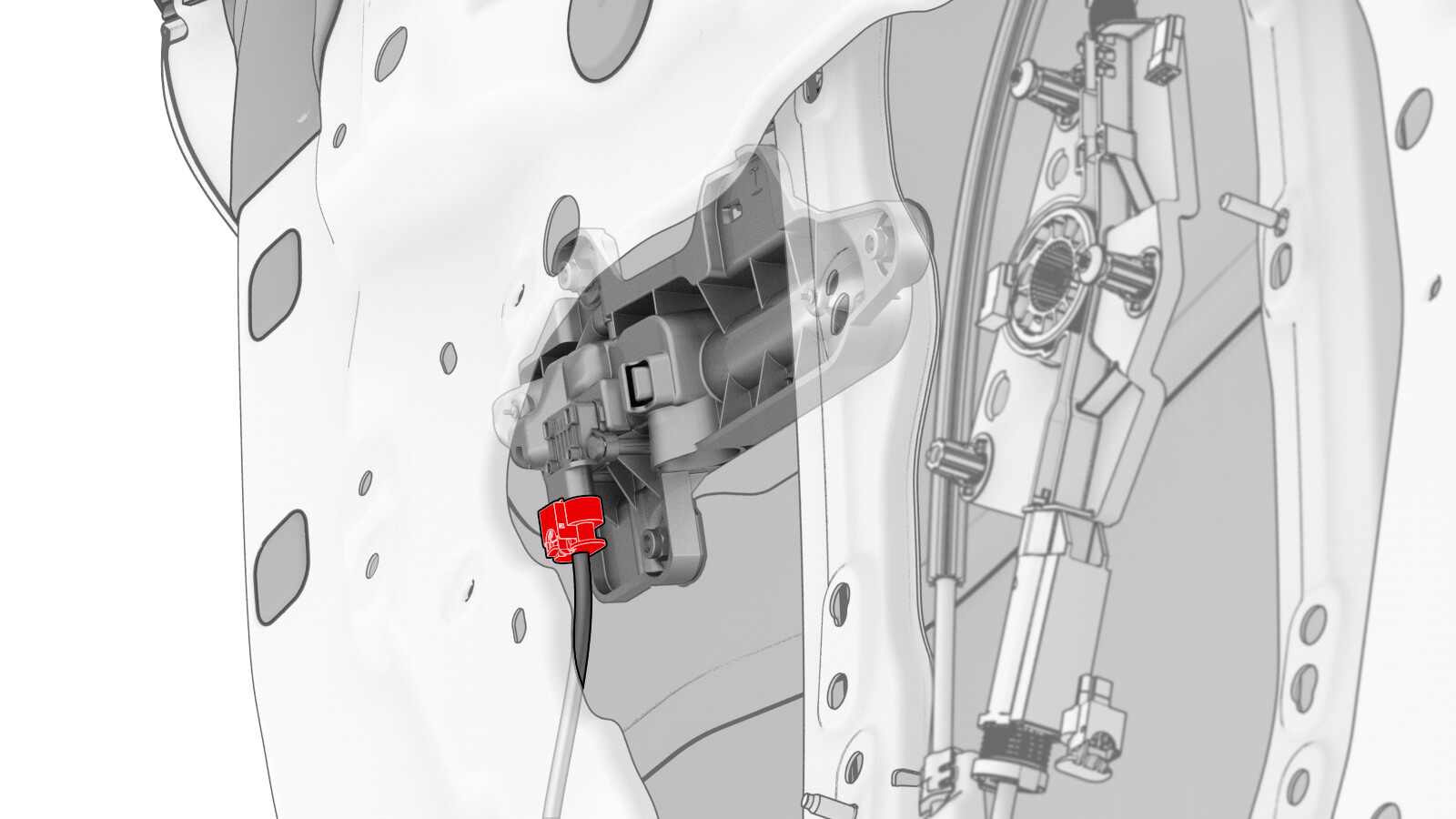 - Disconnect the electrical connector from the LH rear door exterior release handle.