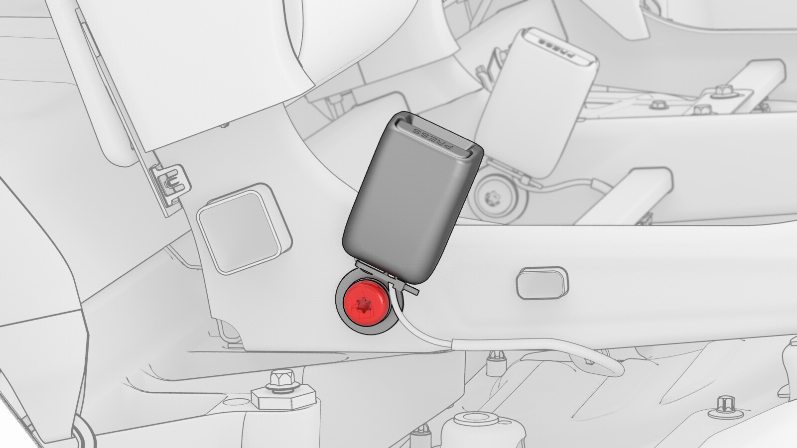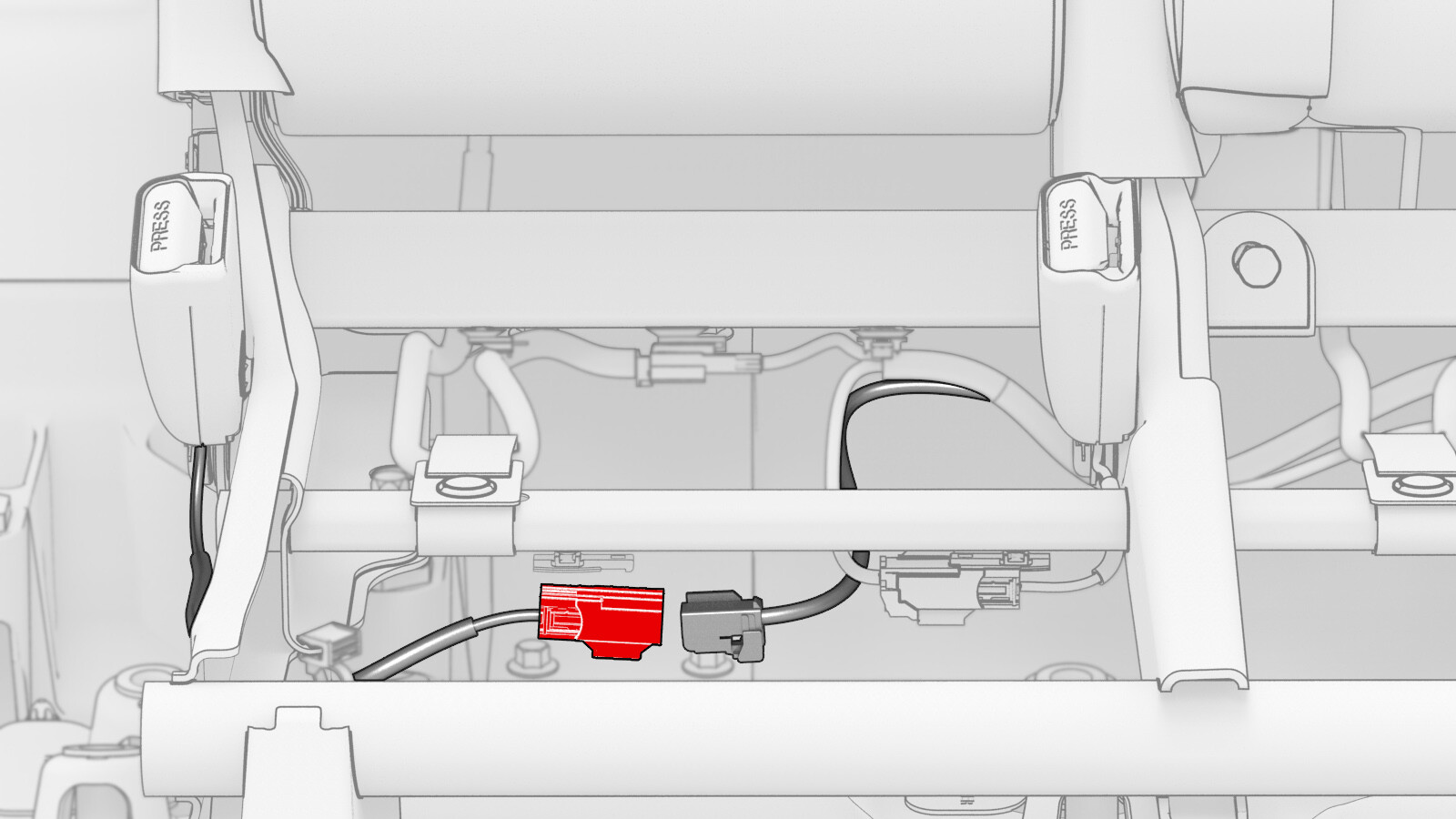 - Remove the center buckle connector from the LH seat frame harness.