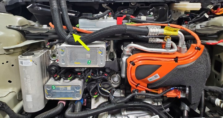 - Use a tie strap to fix the compressor A/C line, and then keep it from Supermanifold.