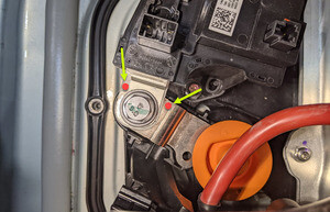 - Remove the HV battery positive contactor from the ancillary bay.