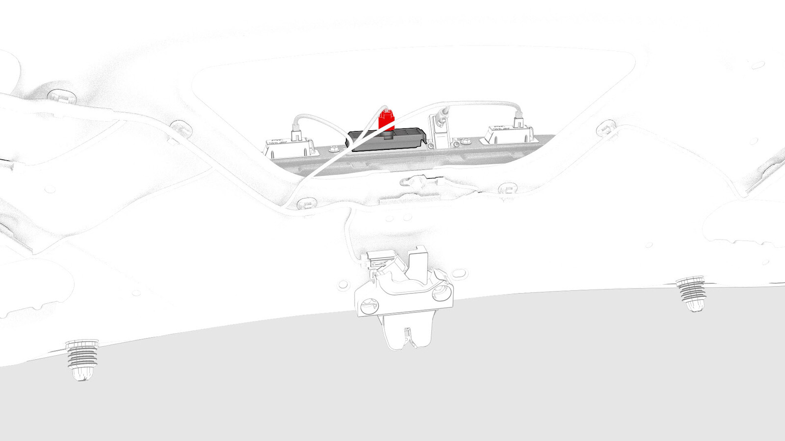 - Connect the electrical connectors to the trunk exterior release switch and the rear facing camera.