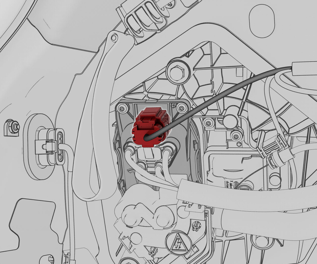- Clean the charge port busbar HV header at the ancillary bay with an IPA wipe, and allow to dry for 1 minute.