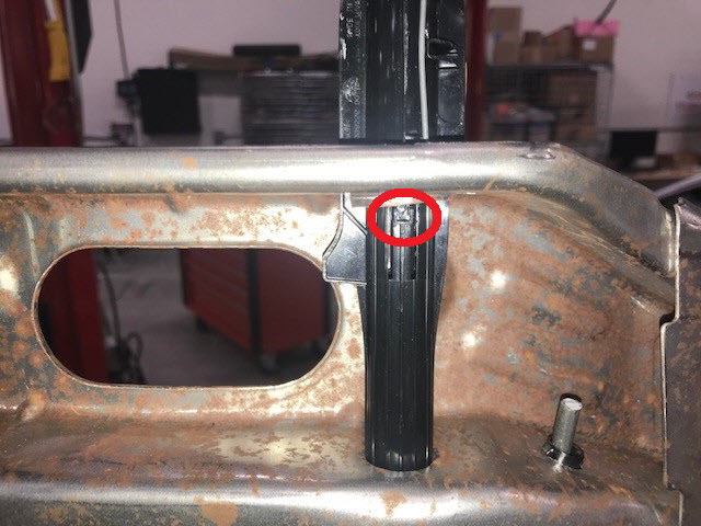 inboard corner of the front passenger seat seat back frame.