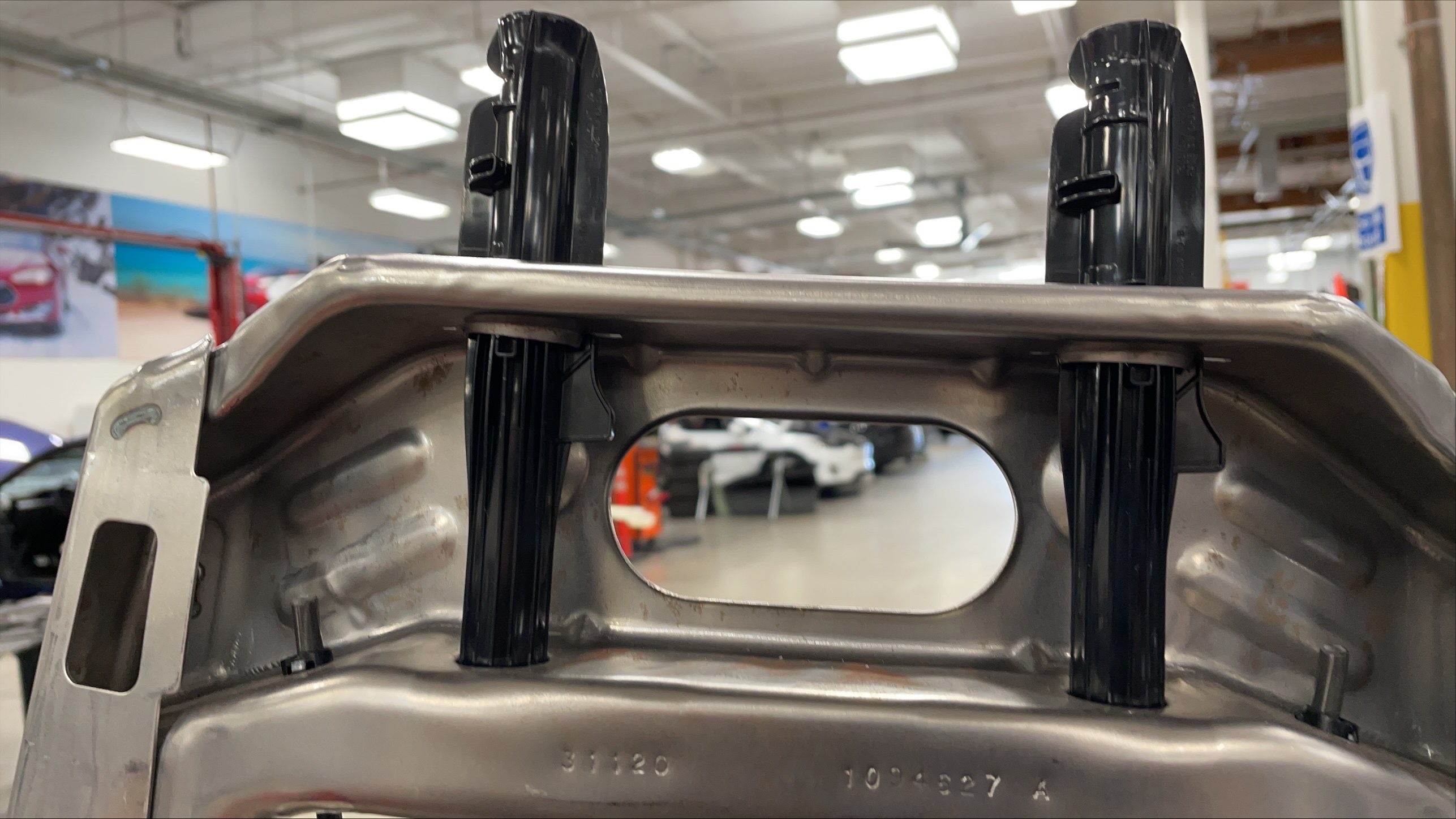 airbag studs into the seat back frame.