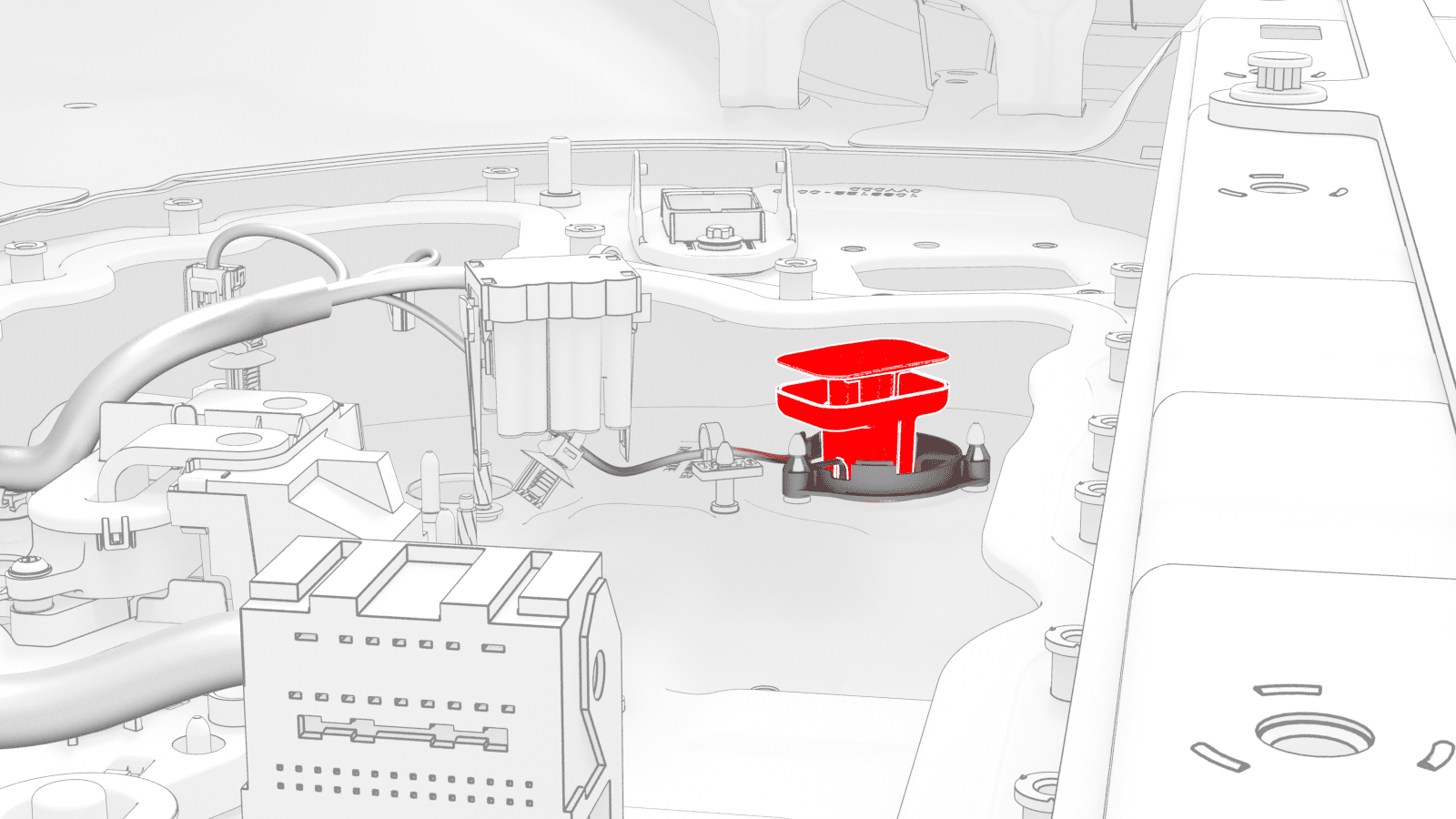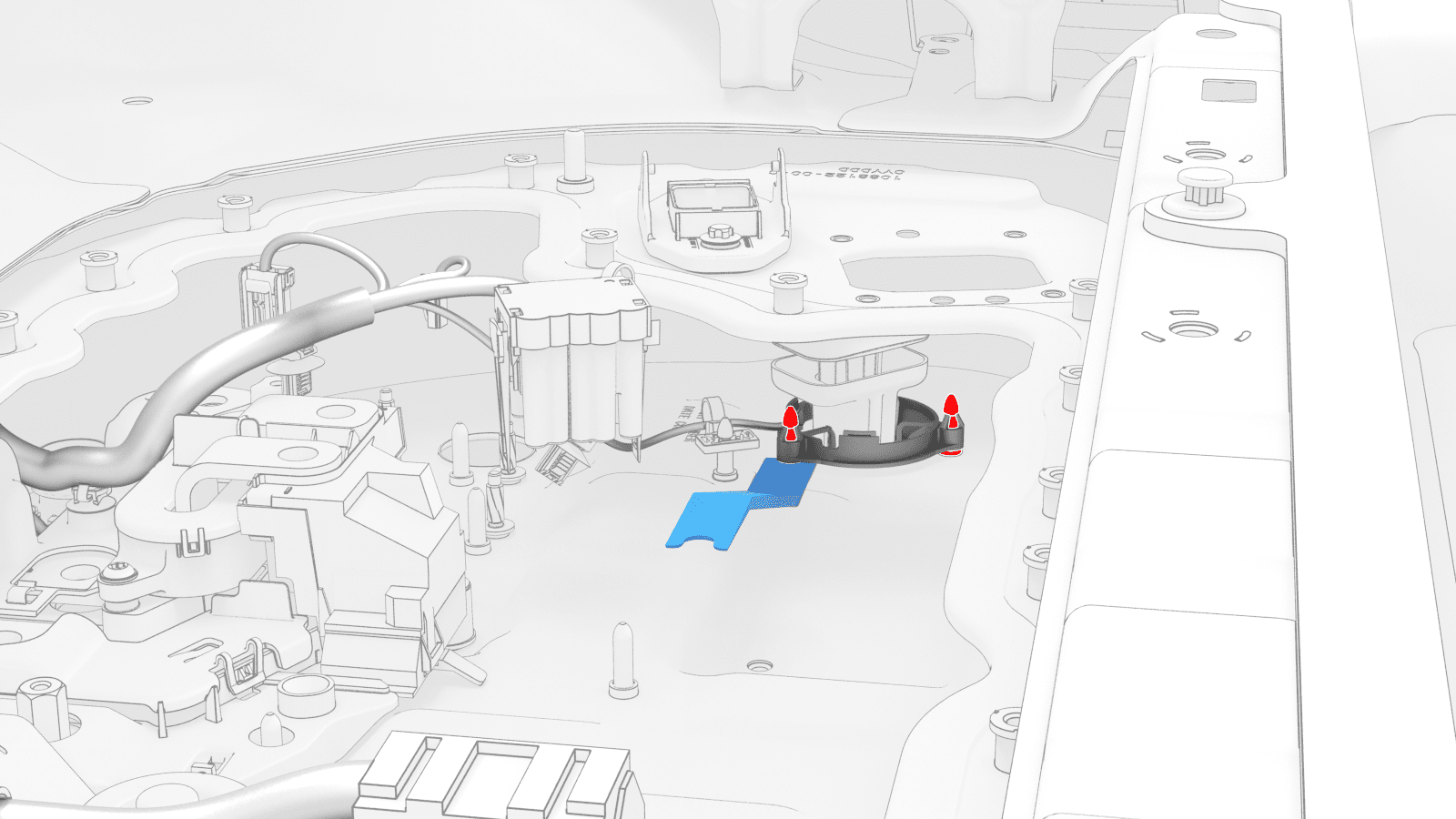- Press the center of the LH passthrough to connect the passthrough connector to the HV battery module 1 BMS connector.