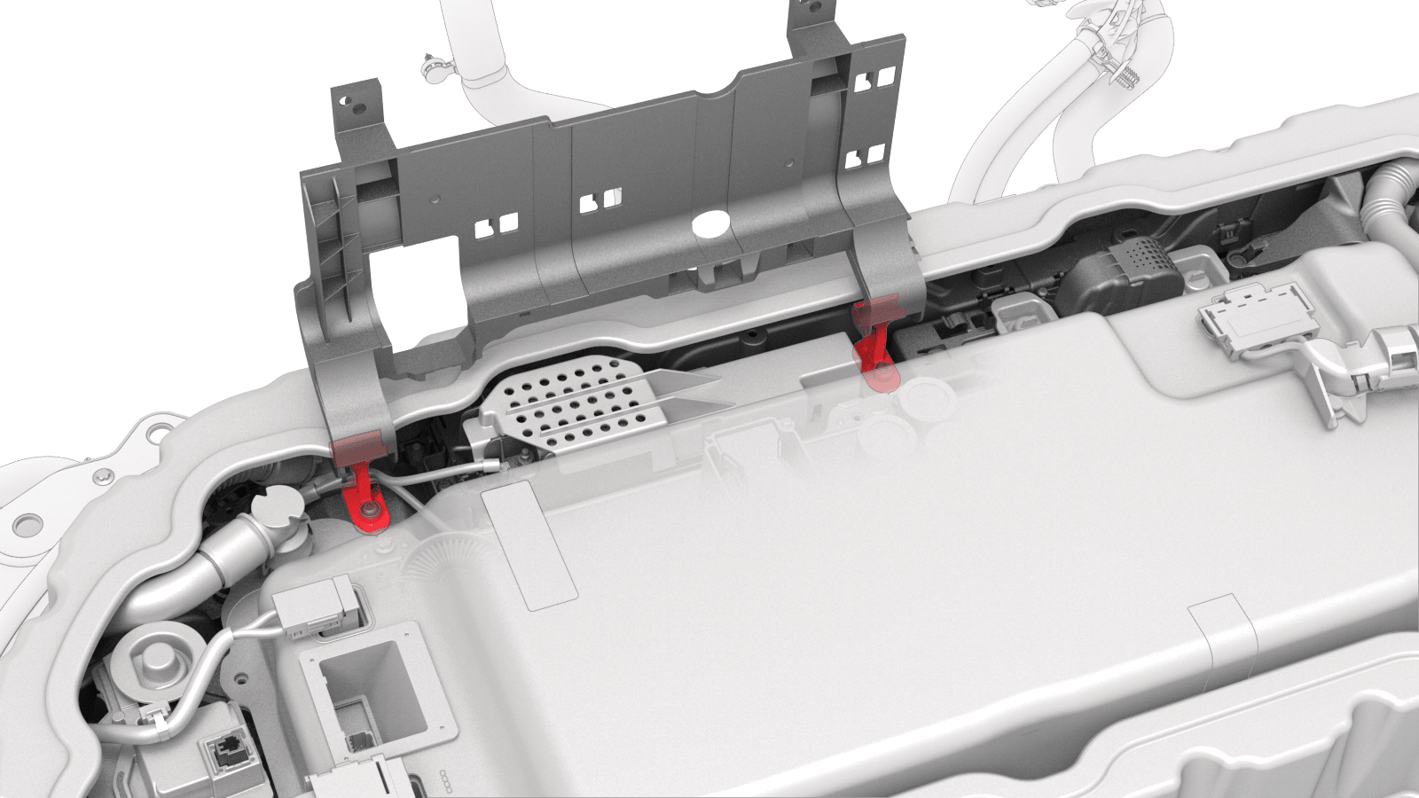- Bring the positive DC link to the ancillary bay, and then fasten the clips that attach the HV battery ancillary bay harness to the positive DC link insulator.