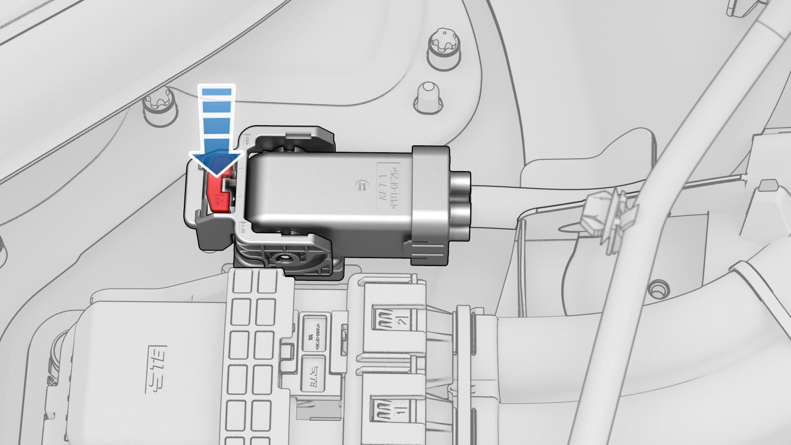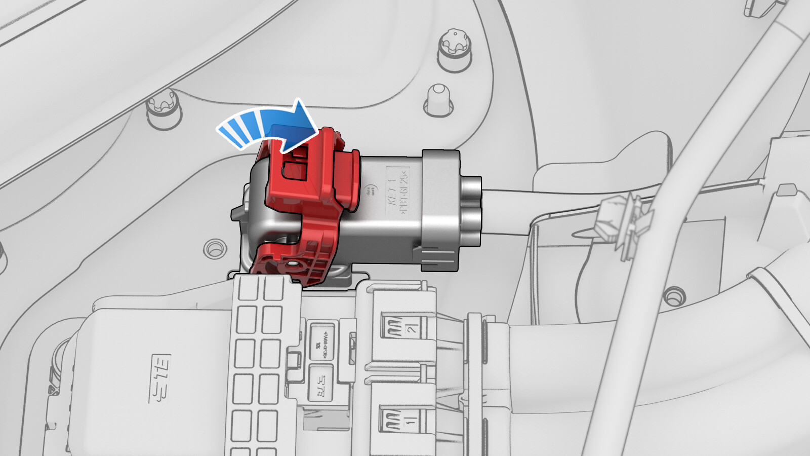 - Connect the A/C compressor HV connector, and then engage the connector lock.