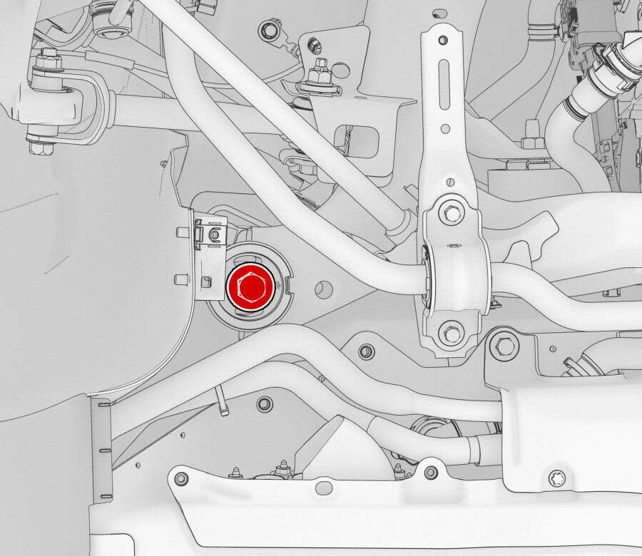 | Bolt that attaches the LH front wheel liner to the HV battery |
