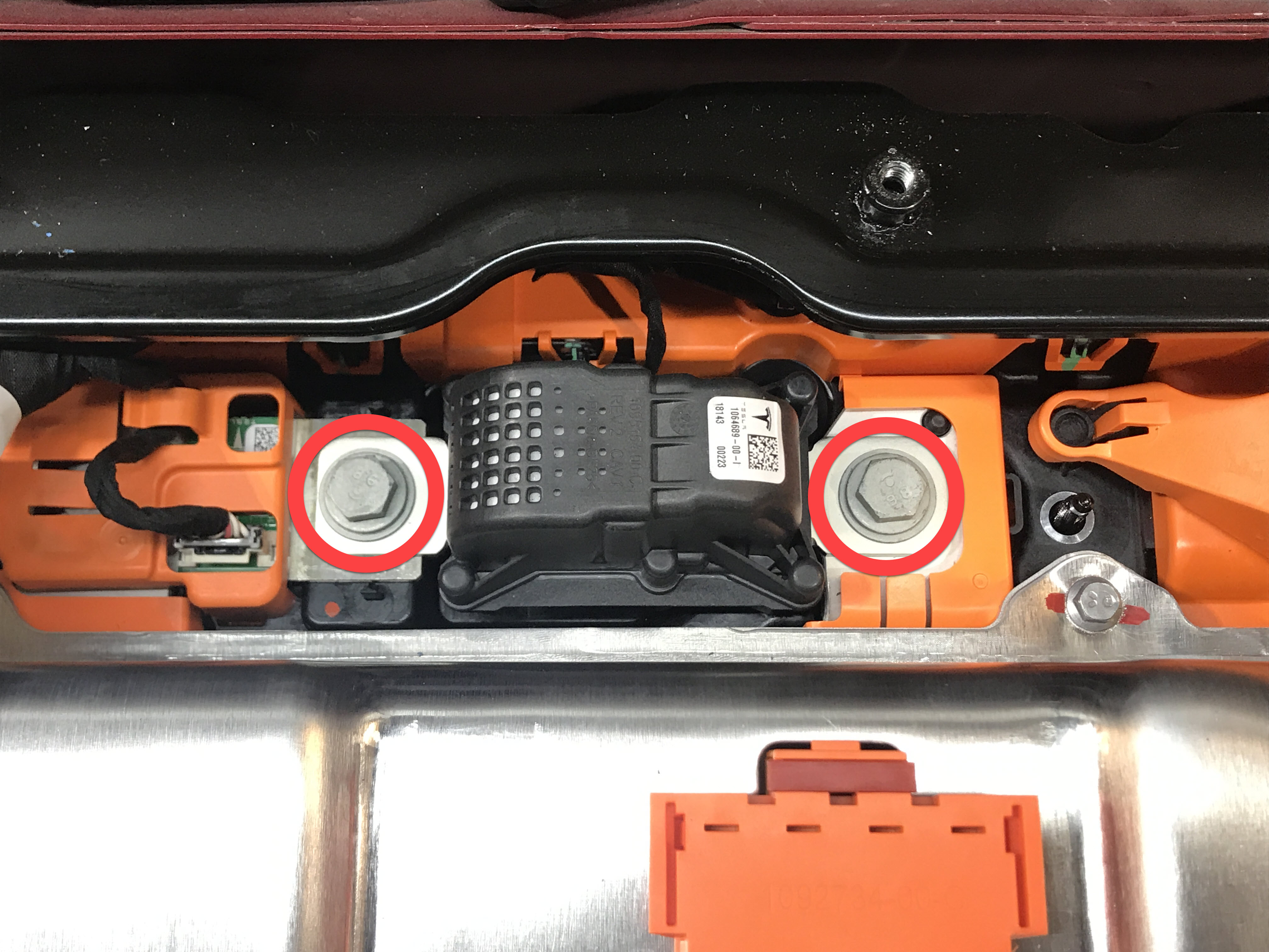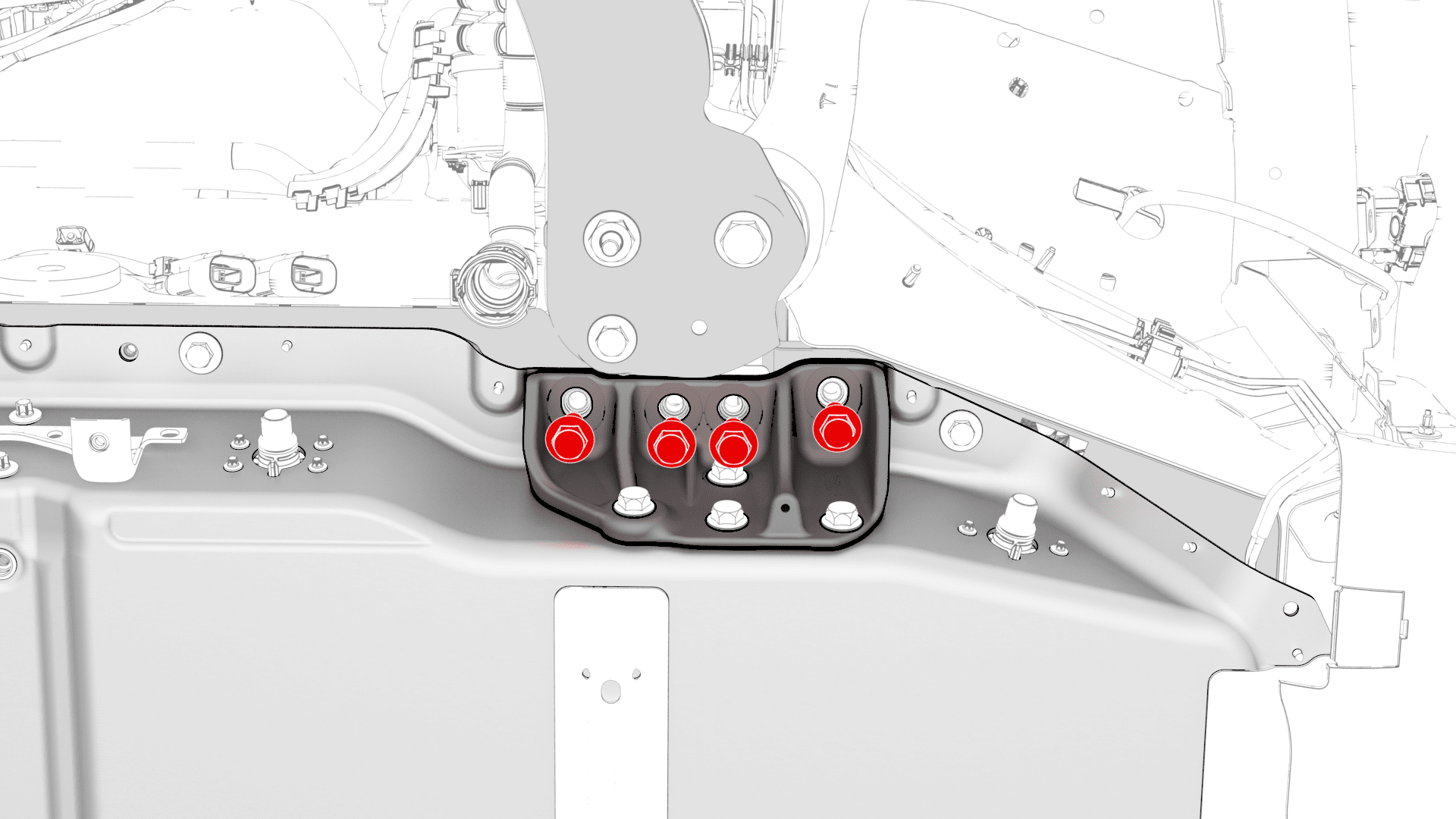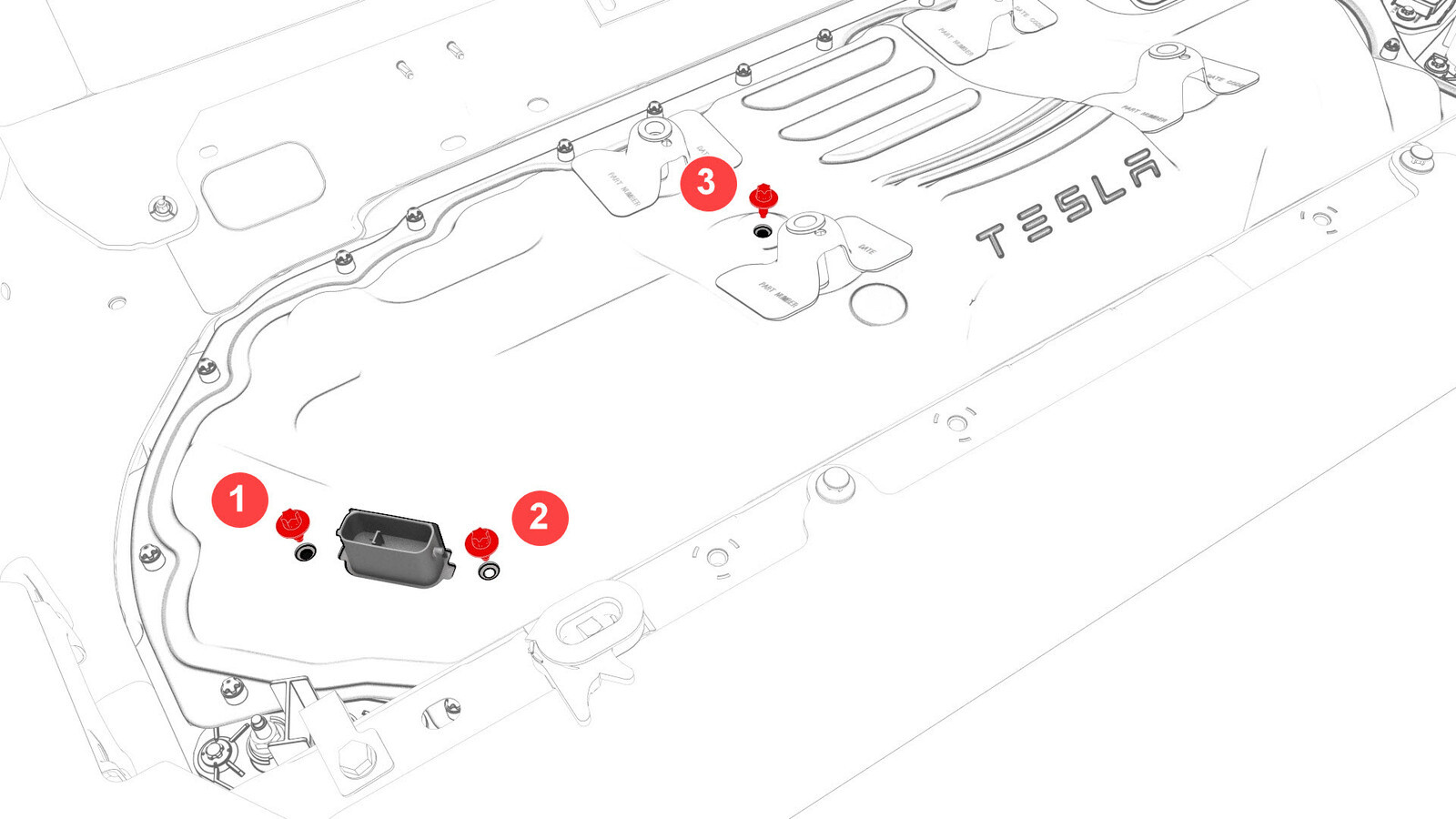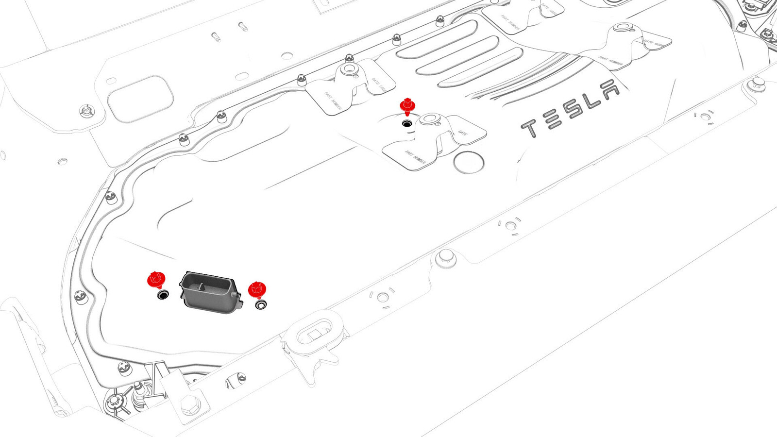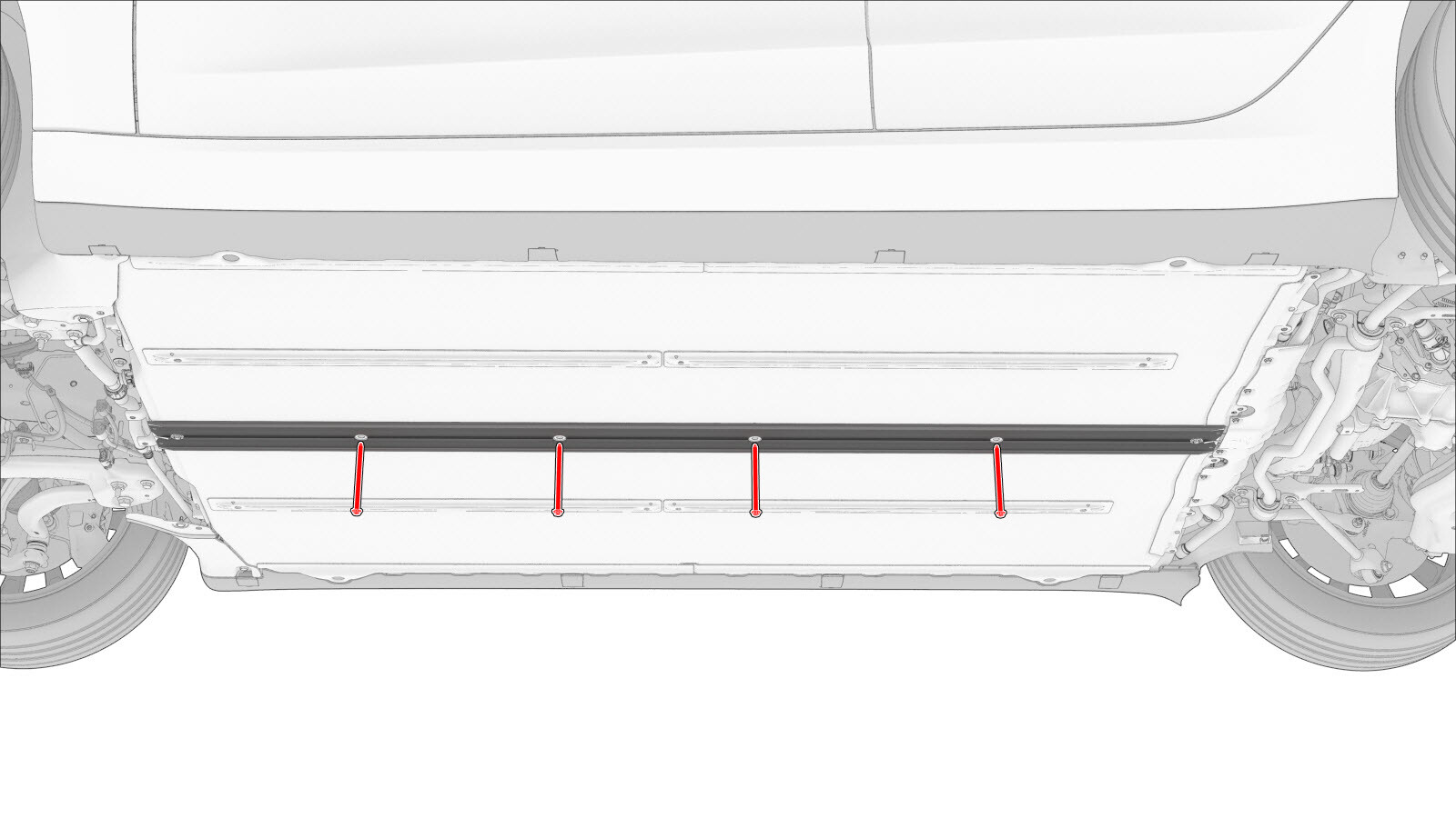 | Center bolts (x4) that attach the HV battery through the HV battery center rail ski cover |