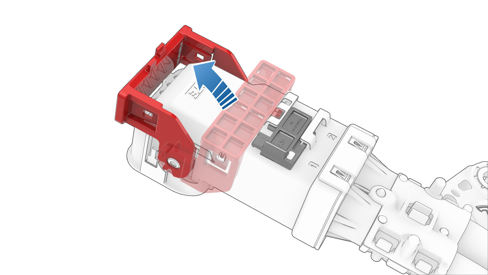 - Slide the release to lock the HV battery rear drive unit connector handle in the secured position.