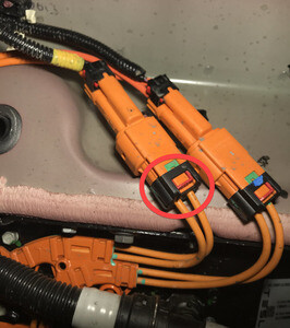 - Remove the plastic bracket that attaches the HV connectors to the HV battery.