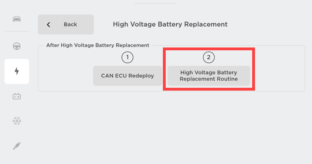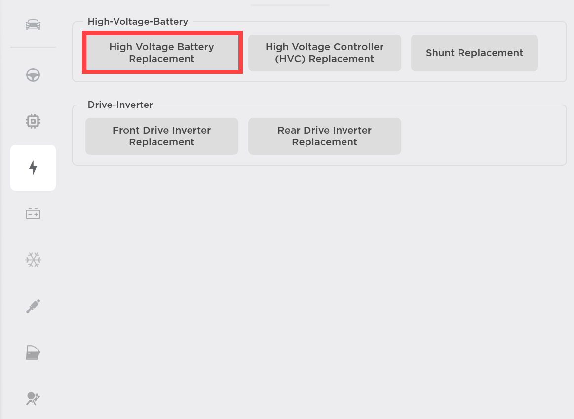 - Under High-Voltage-Battery, touch High Voltage Battery Replacement.