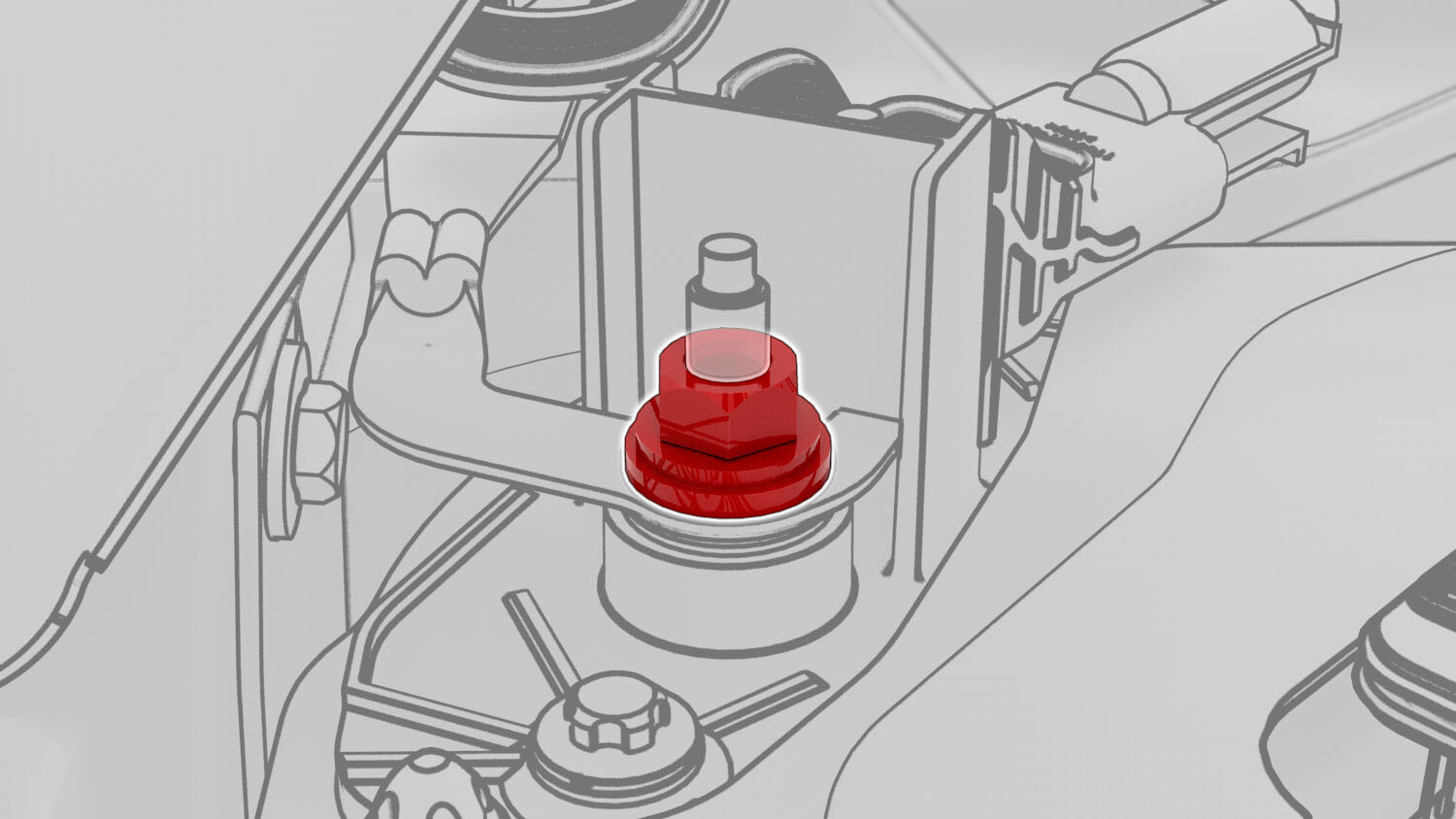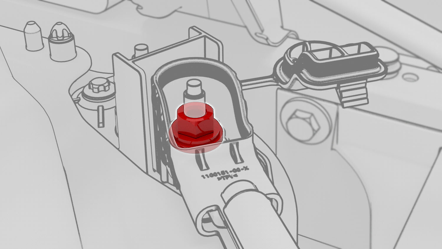 | Nut that attaches the RDU HV electrical harness bracket to the HV battery |
