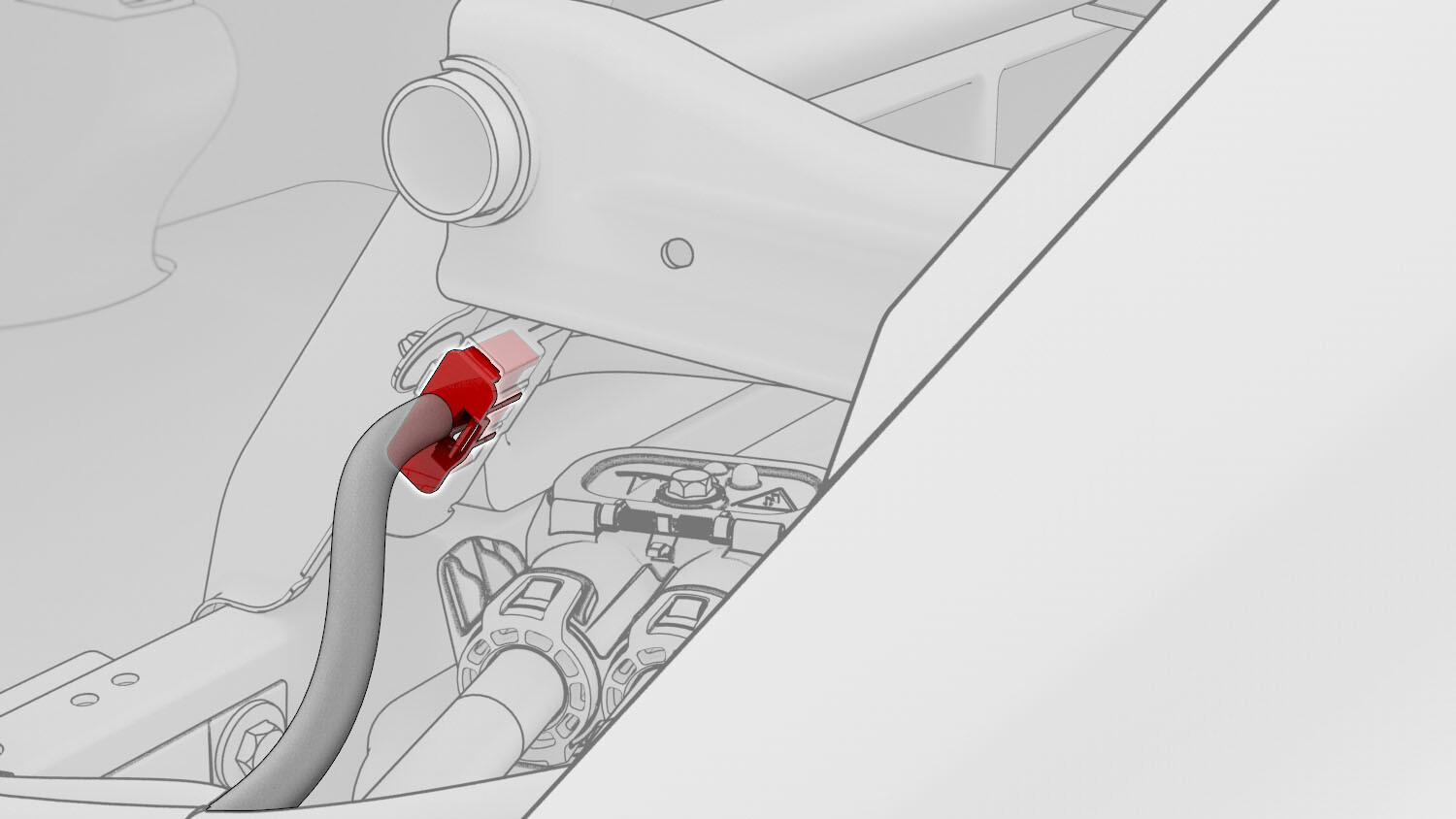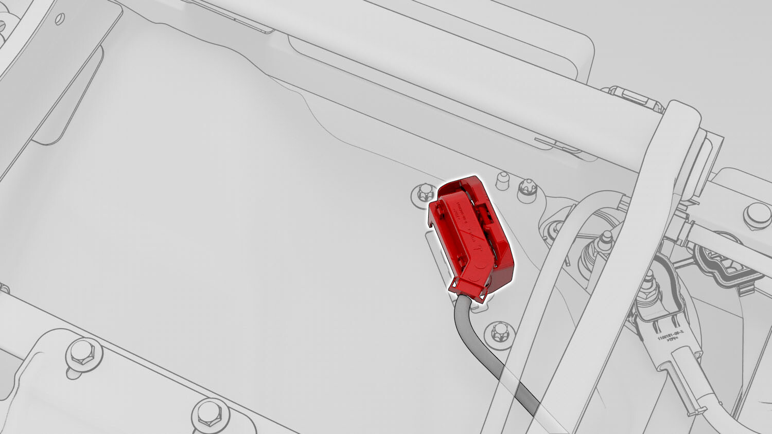 - Install the HV connector special tool onto the HV battery rear drive unit connector.