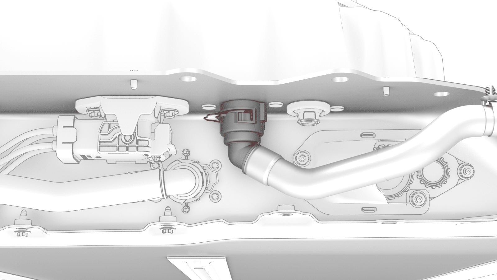 Remove the plugs from the powertrain return hose at the RH side of the vehicle, immediately connect the male and female fittings, and then fasten the clip.