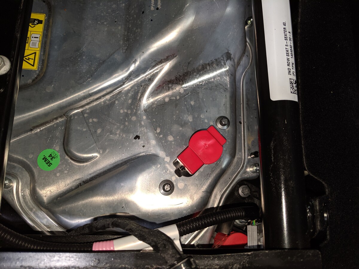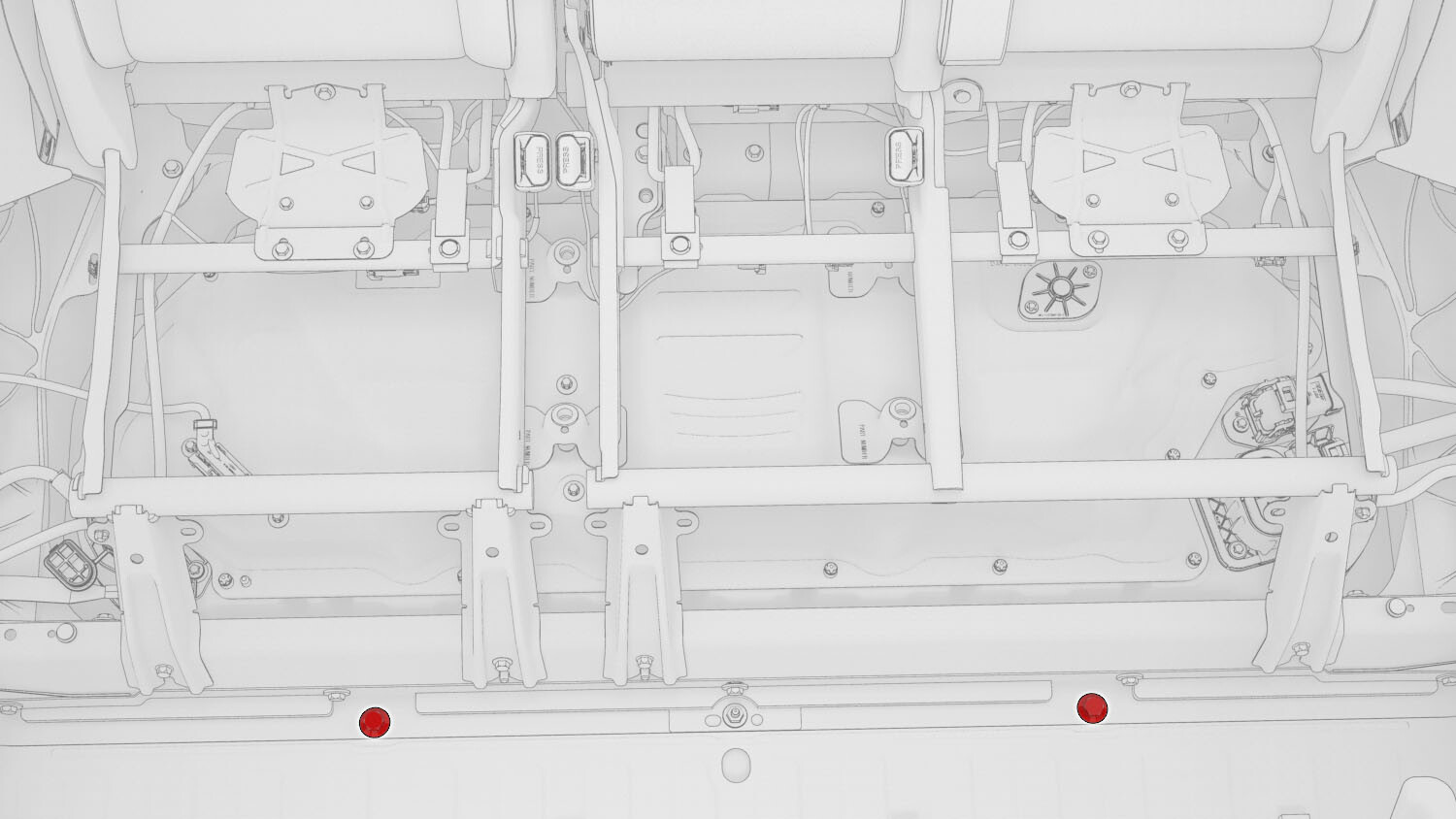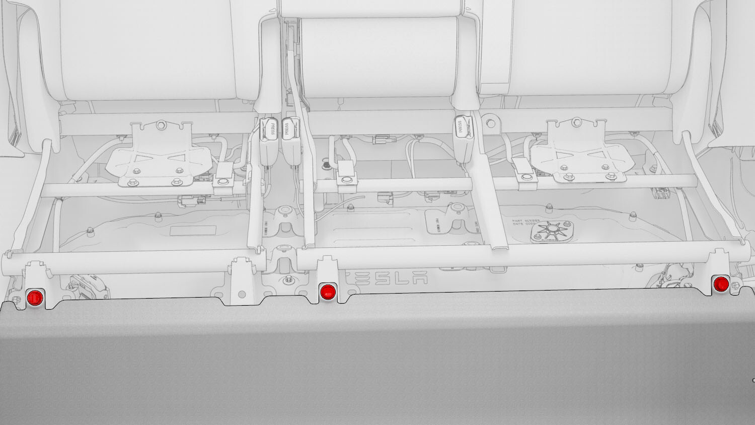 | Outer bolts (x2) that attach the center rail ski cover to the HV battery |