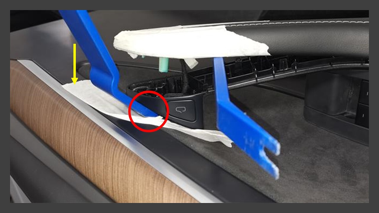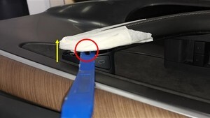 - Use a plastic trim tool to pry open the door handle trim panel.