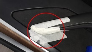 - Remove the masking tape from the LH front door trim panel.