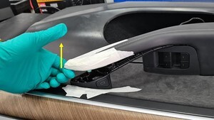 - Apply masking tape along the top surface of the LH front door trim panel for protection.