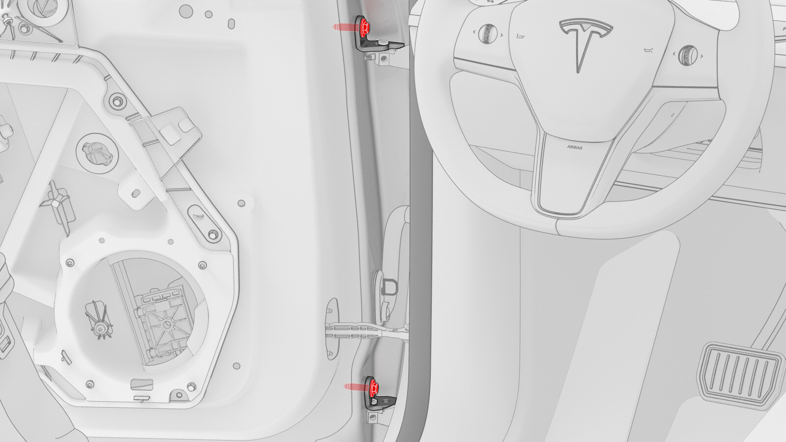 the LH front door to the upper and lower hinges.