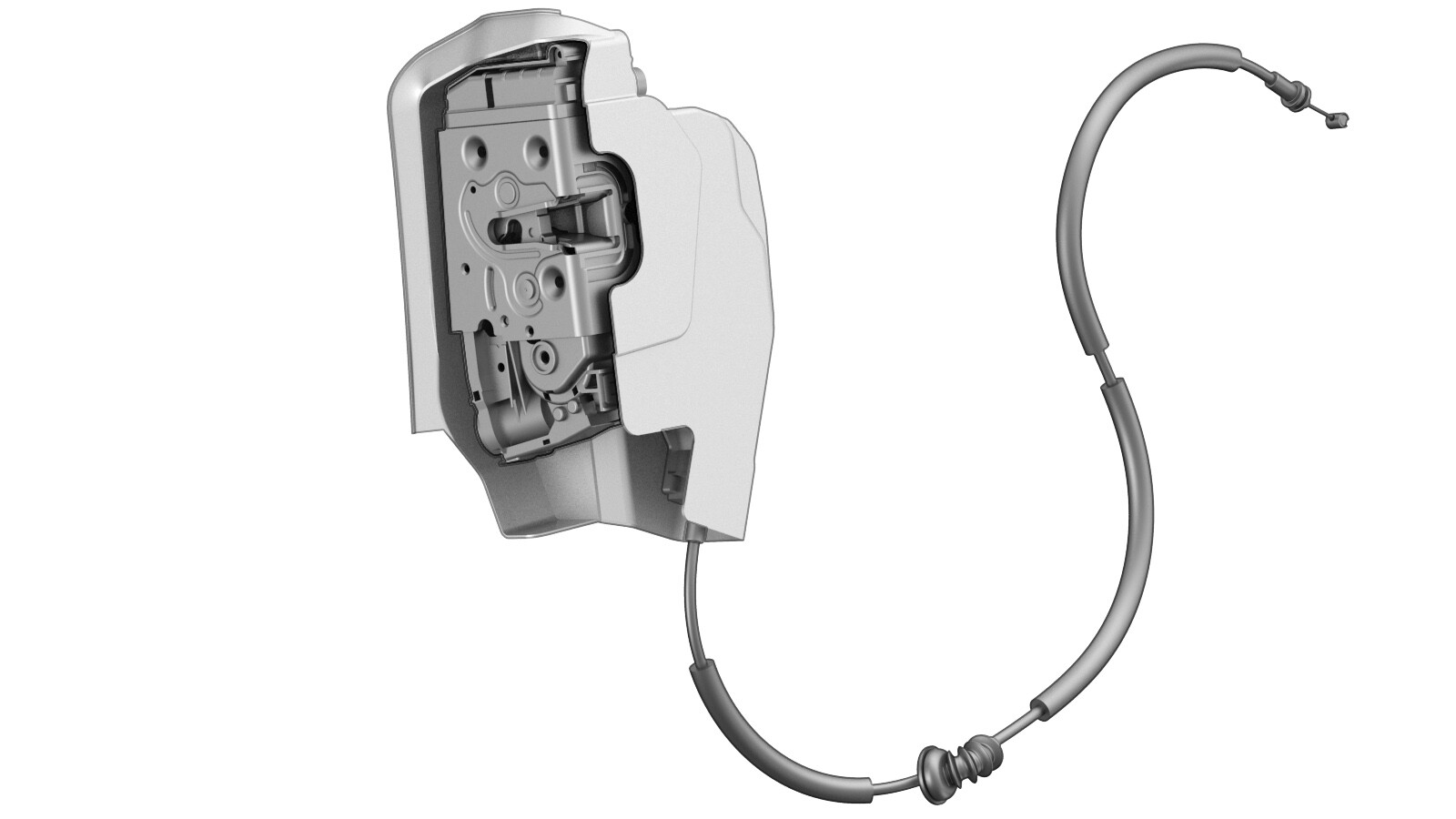 - Press the latch cable grommet in through the door, and move the cable in through the opening while simultaneously removing the latch from the door.