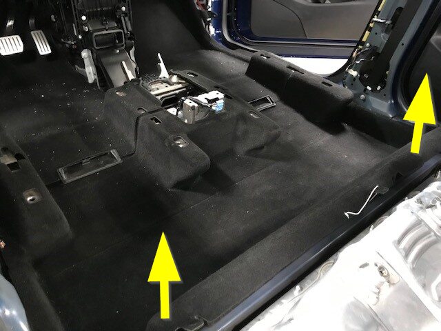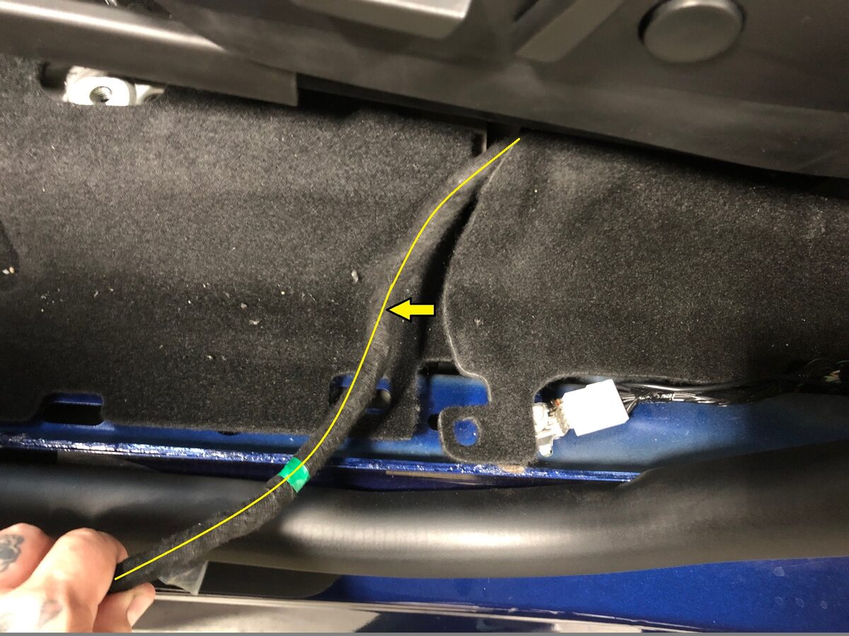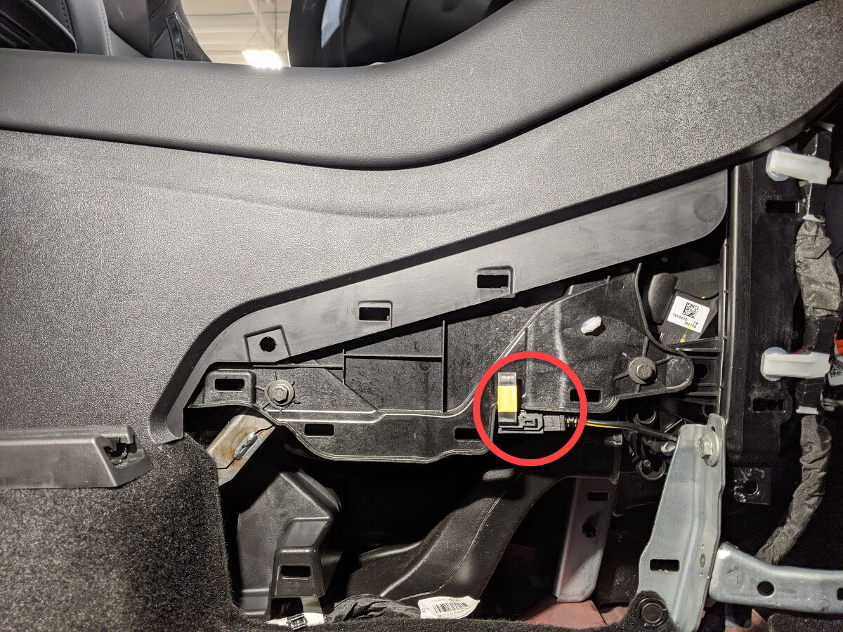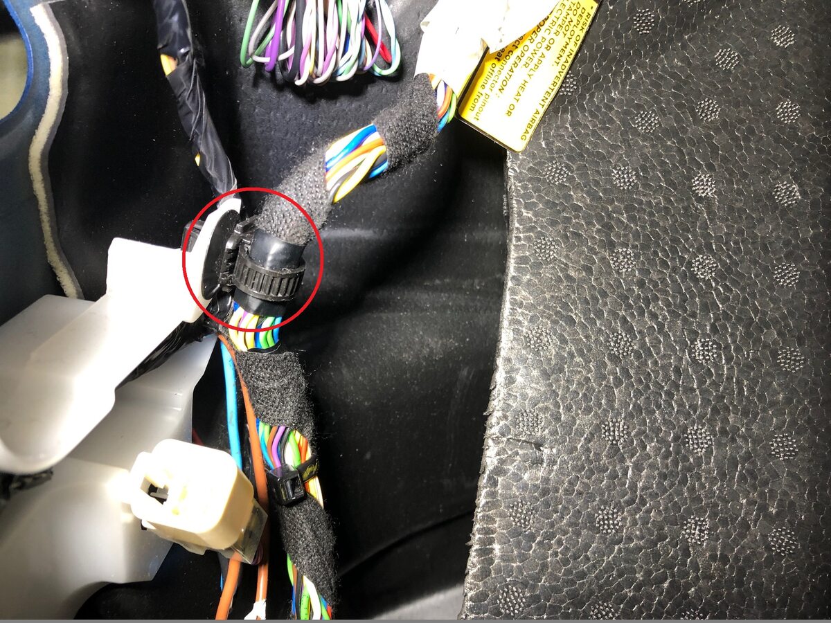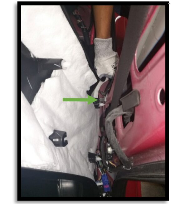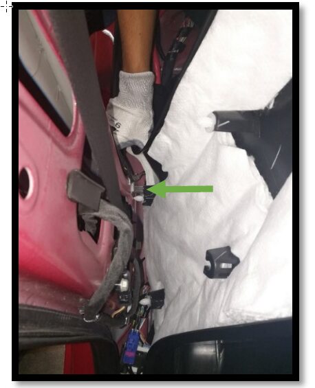 - Pull RH front cabin carpet away from A-pillar to access RH front seat connector