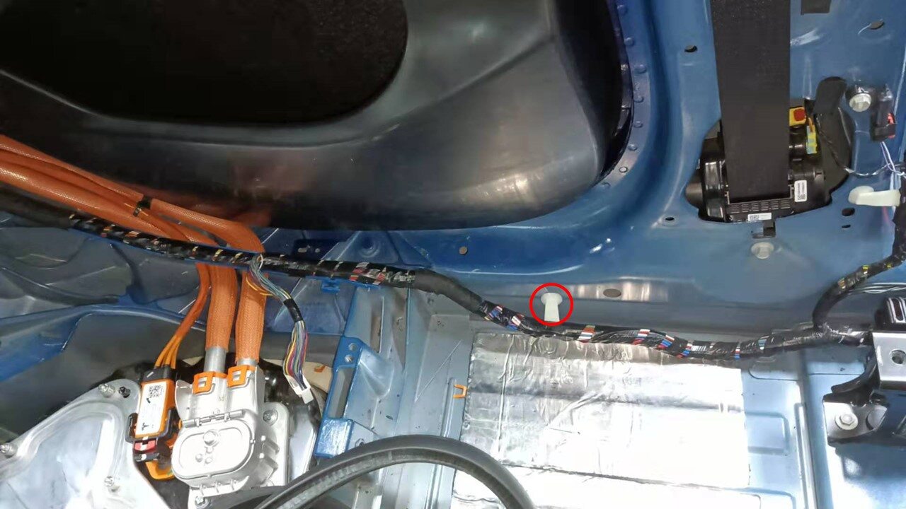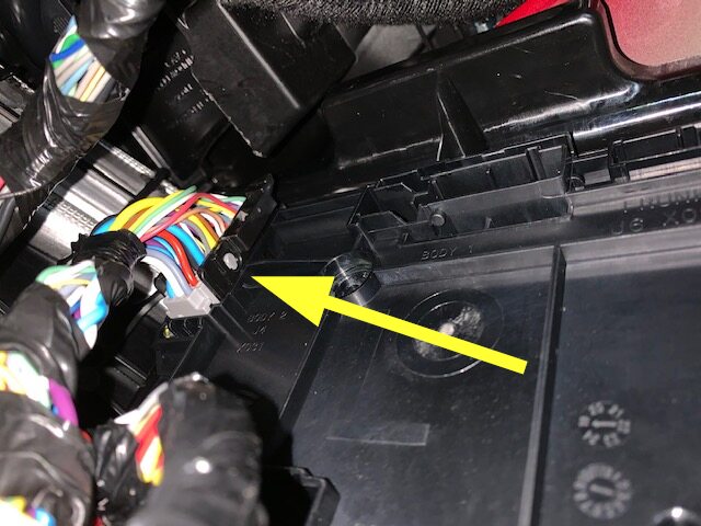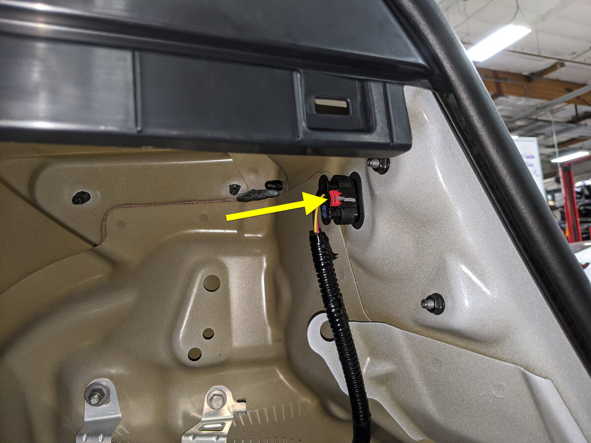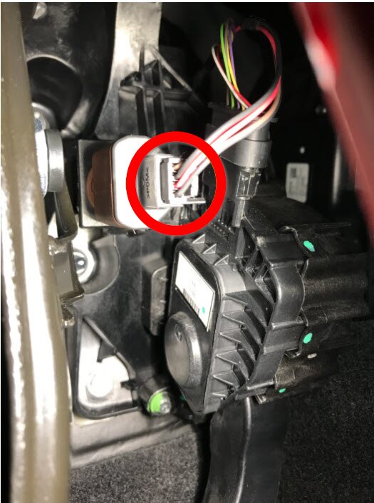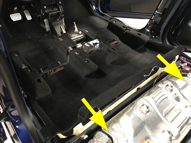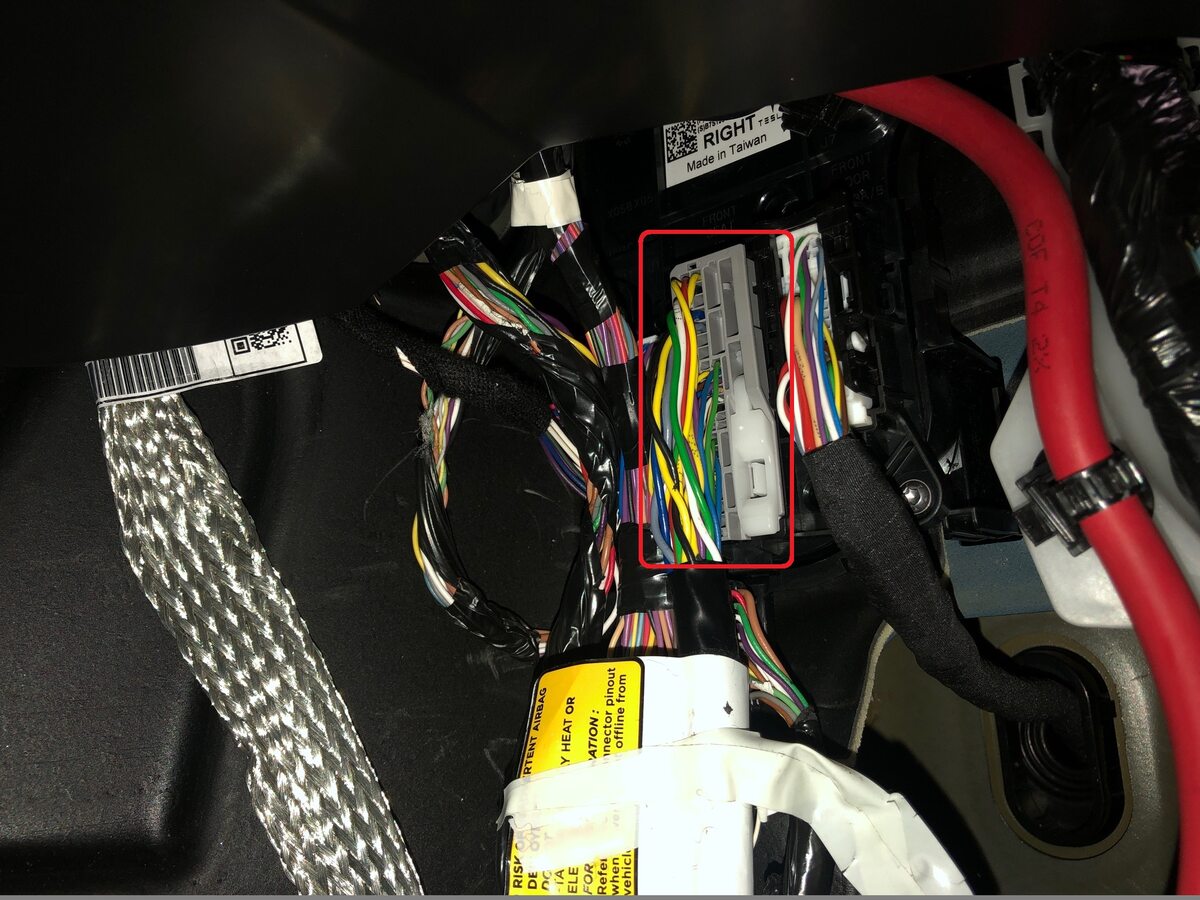 - Pull RH front cabin carpet away from A-pillar to access RH front seat connector