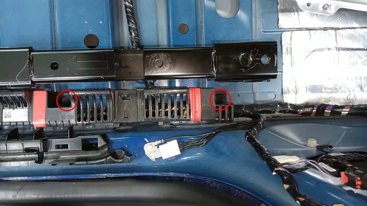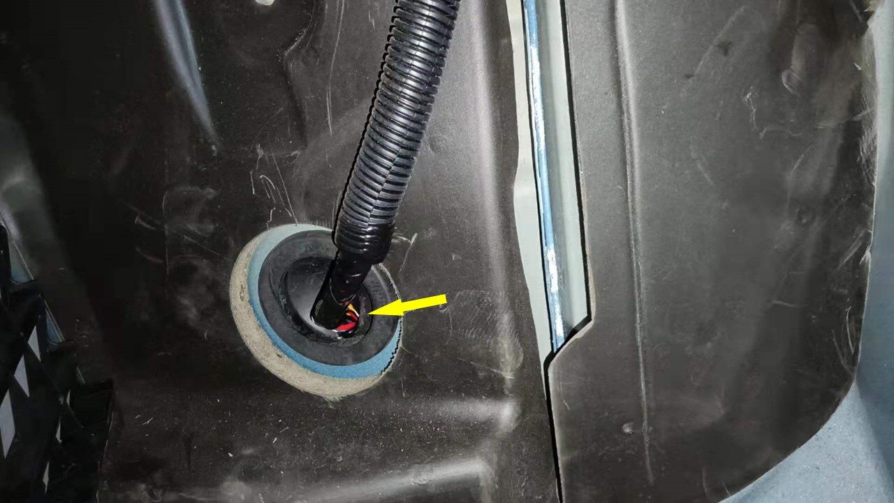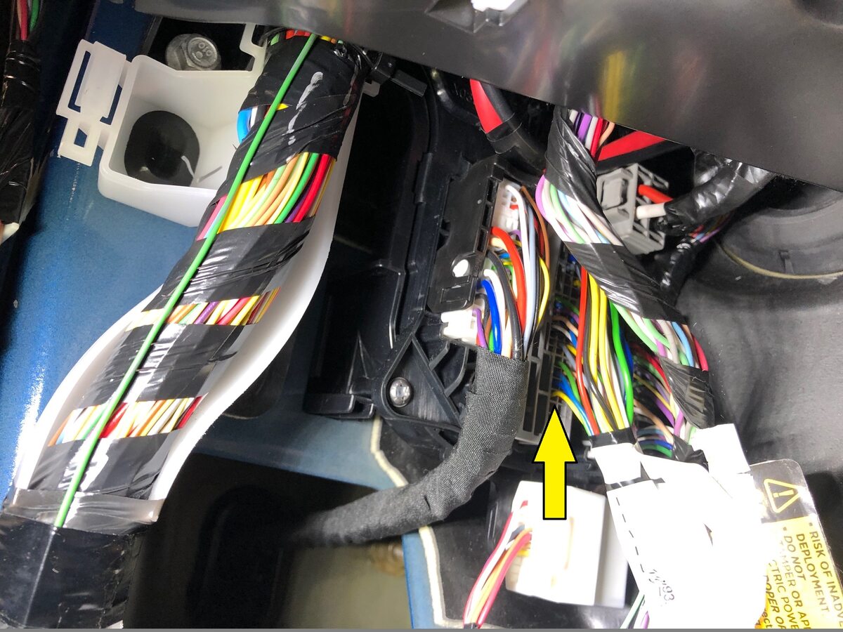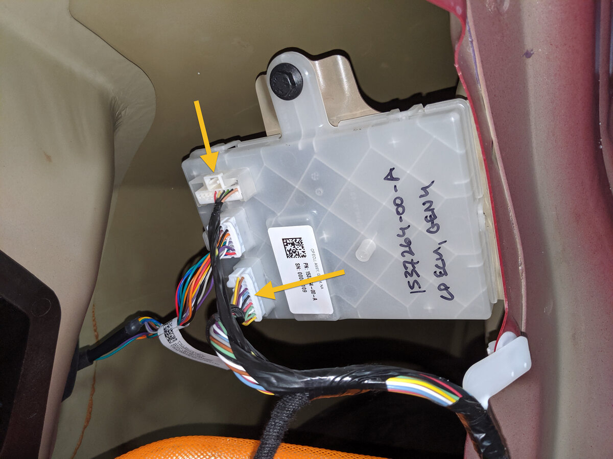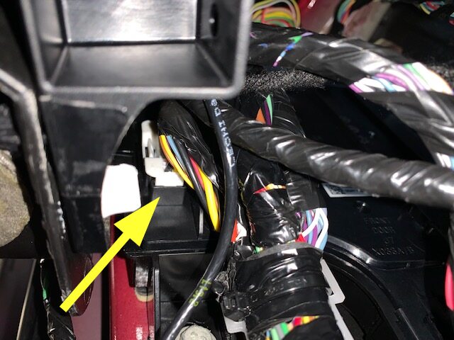 - Pull RH front cabin carpet away from A-pillar to access RH front seat connector