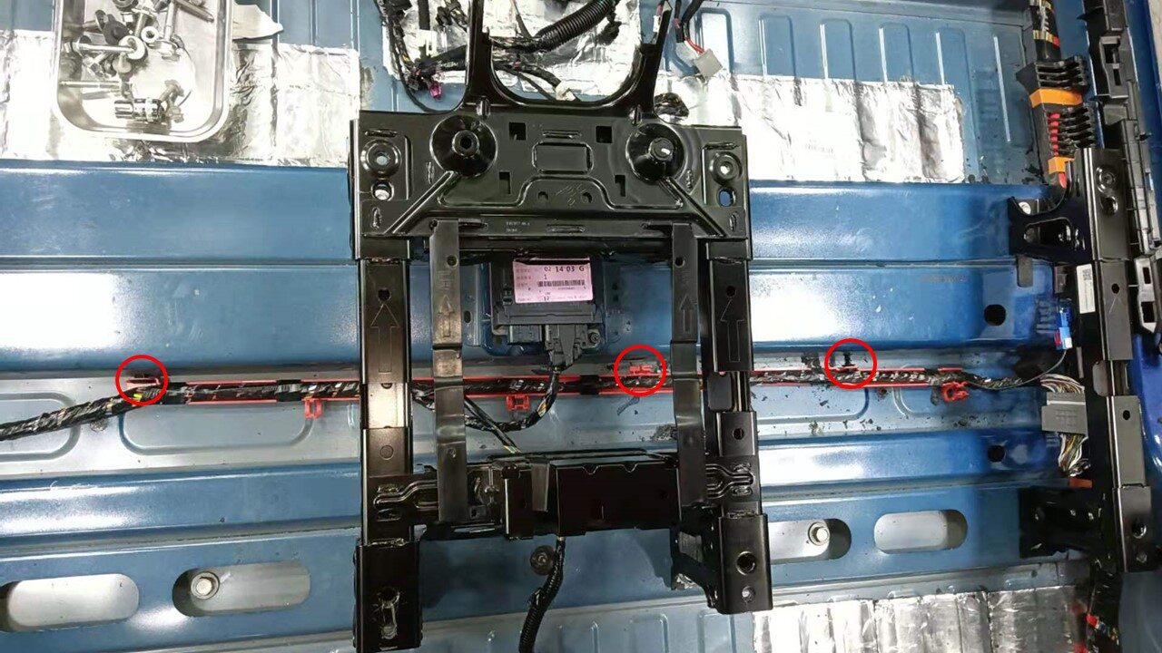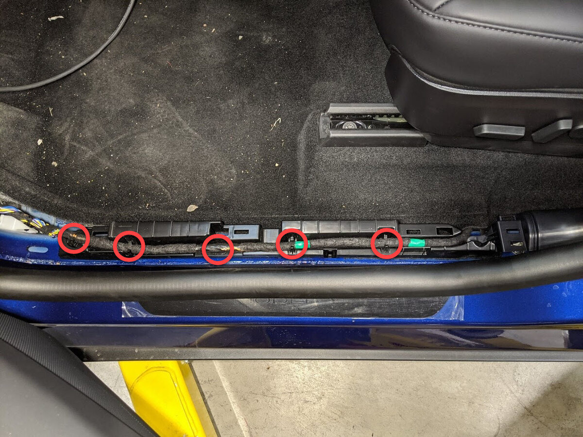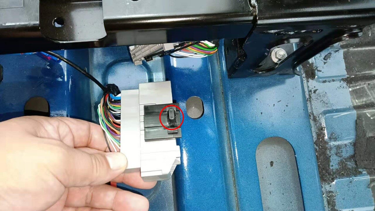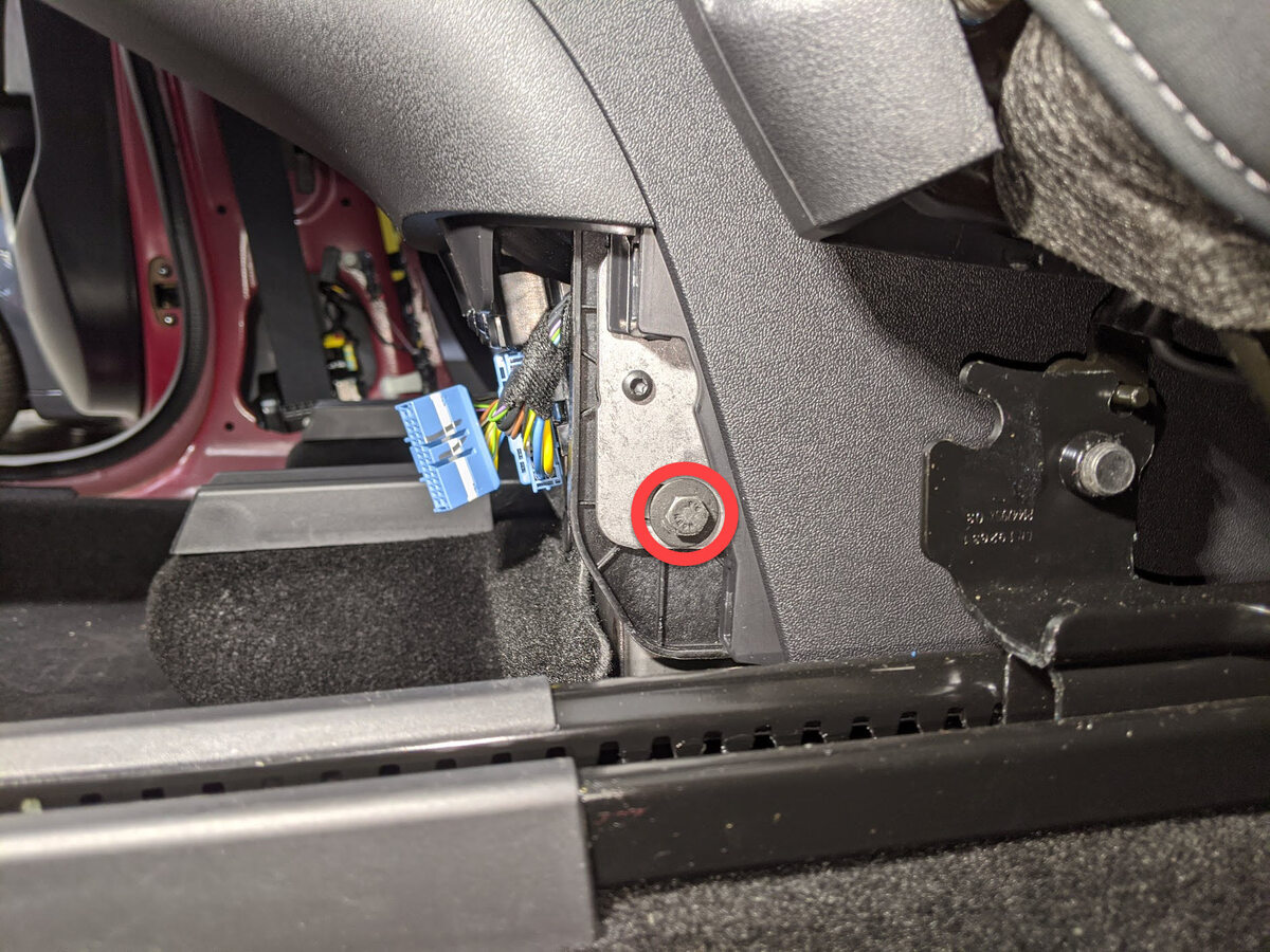 - Pull LH front cabin carpet away from A-pillar to access LH front seat connector
