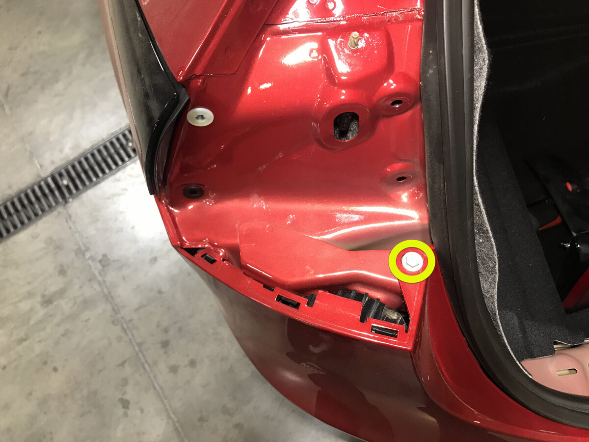 Note6x clips, Guide front upper corner groove under headliner, Insert guide tab to headliner behind quarterglass, Seat trunk seal to edge of trim