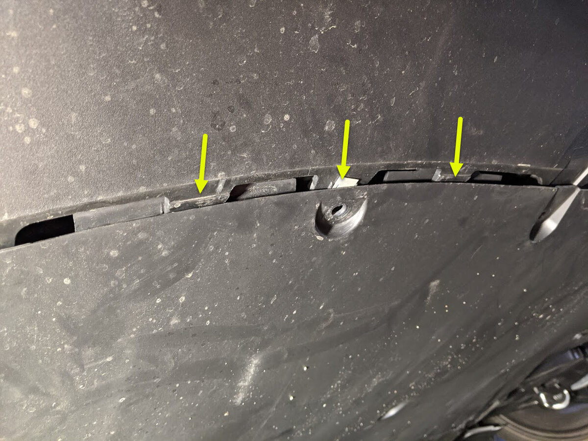 Note14x clips, Hold rear wall of frunk to keep from flexing while engaging front clips