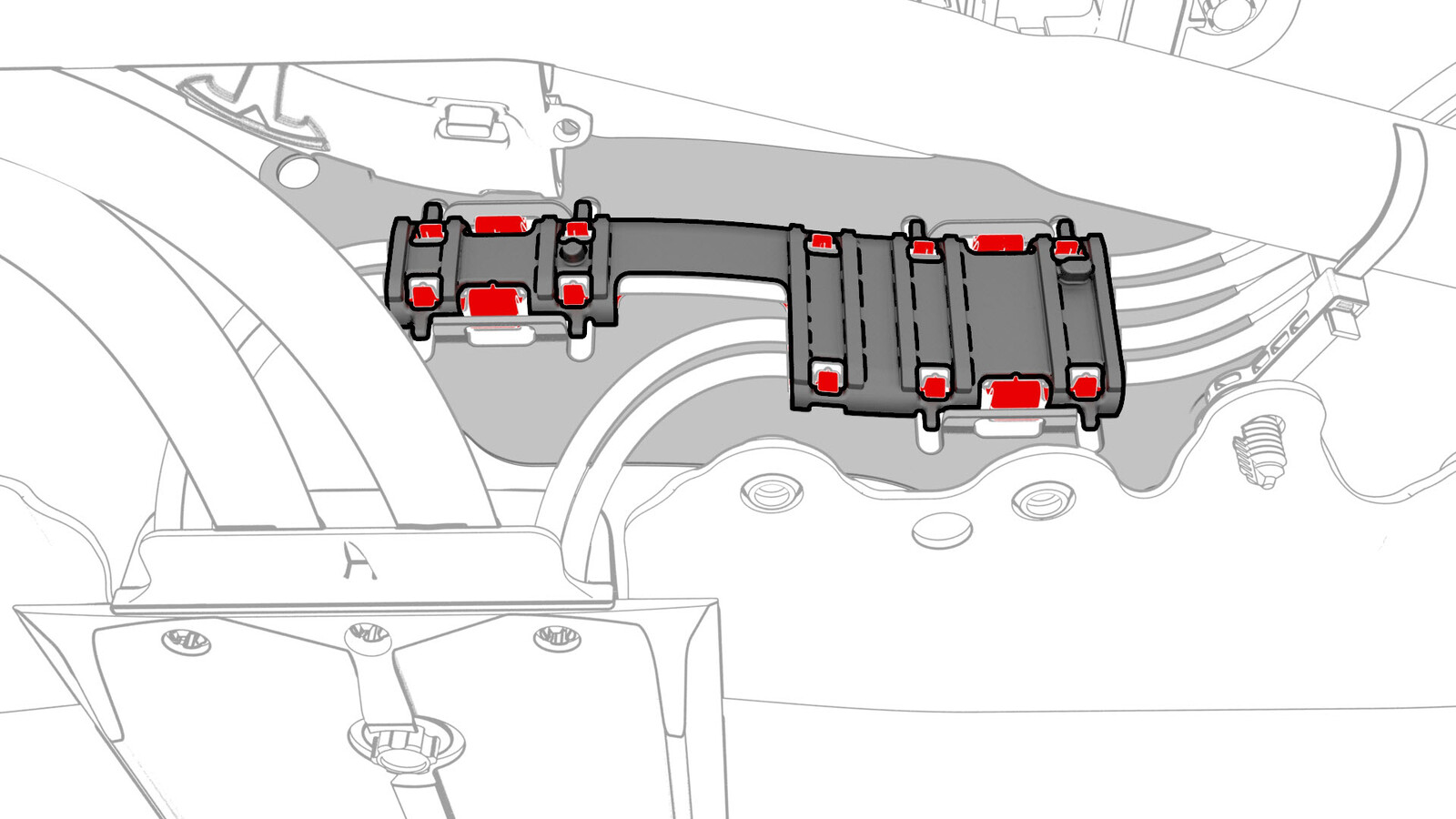 3. Install the cap cover at the front of the HV battery center rail ski.