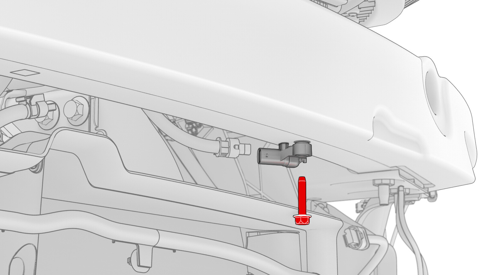 | Bolt that attaches the airbag sensor to the front end carrier |