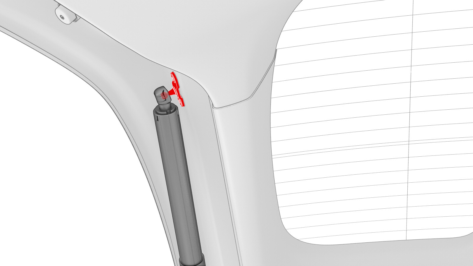 - Release the upper liftgate power strut ball stud that is attached to the liftgate, and then remove the strut from the vehicle.