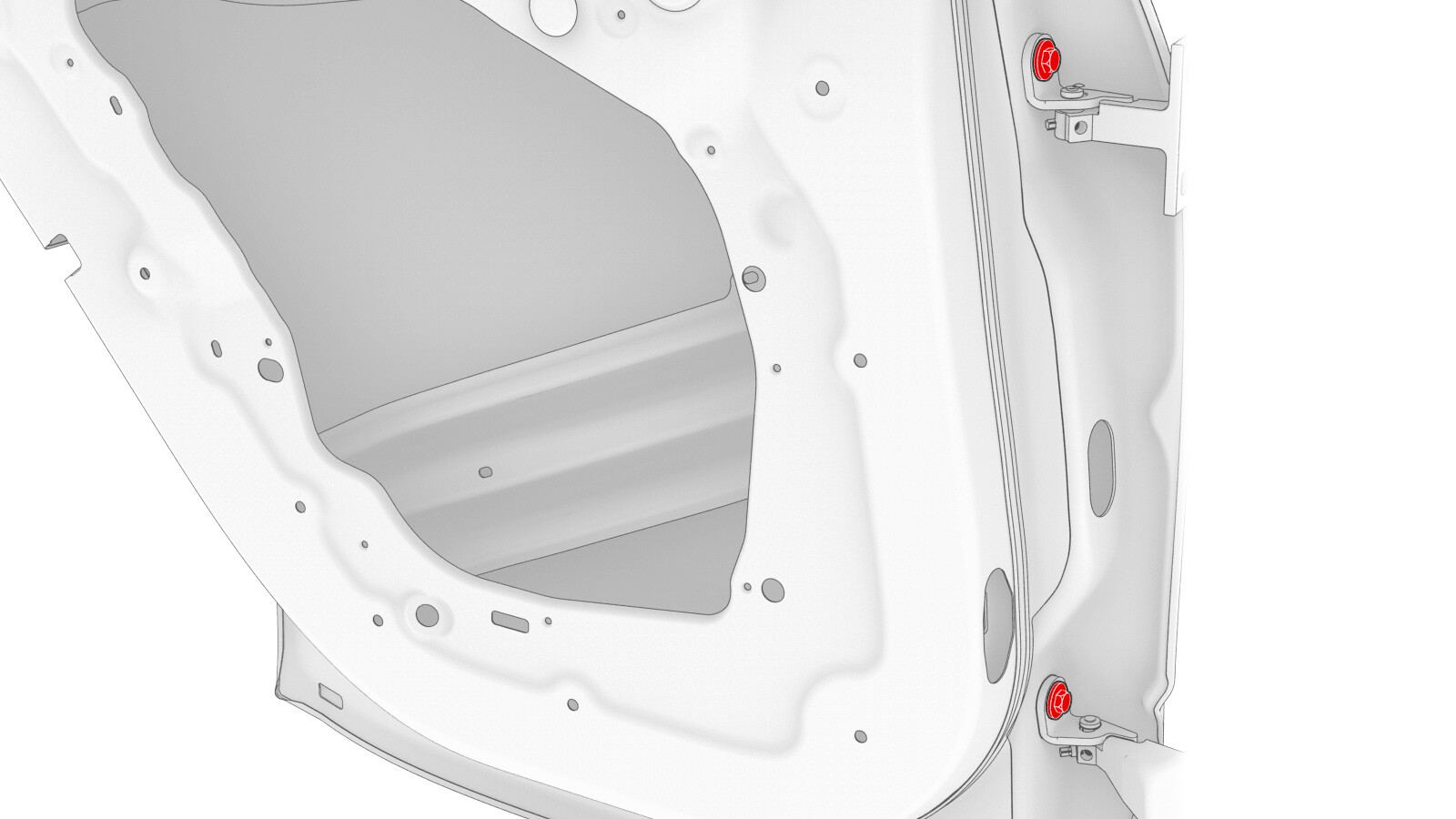 | Bolts that attach the rear LH door to the upper and lower hinges |