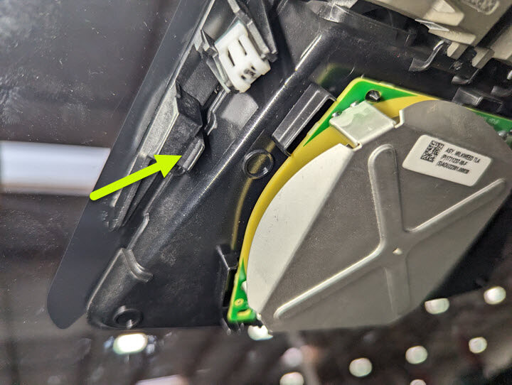 - Connect the interior camera connector, and then install the clips that attach the upper quad camera cover to the vehicle.
