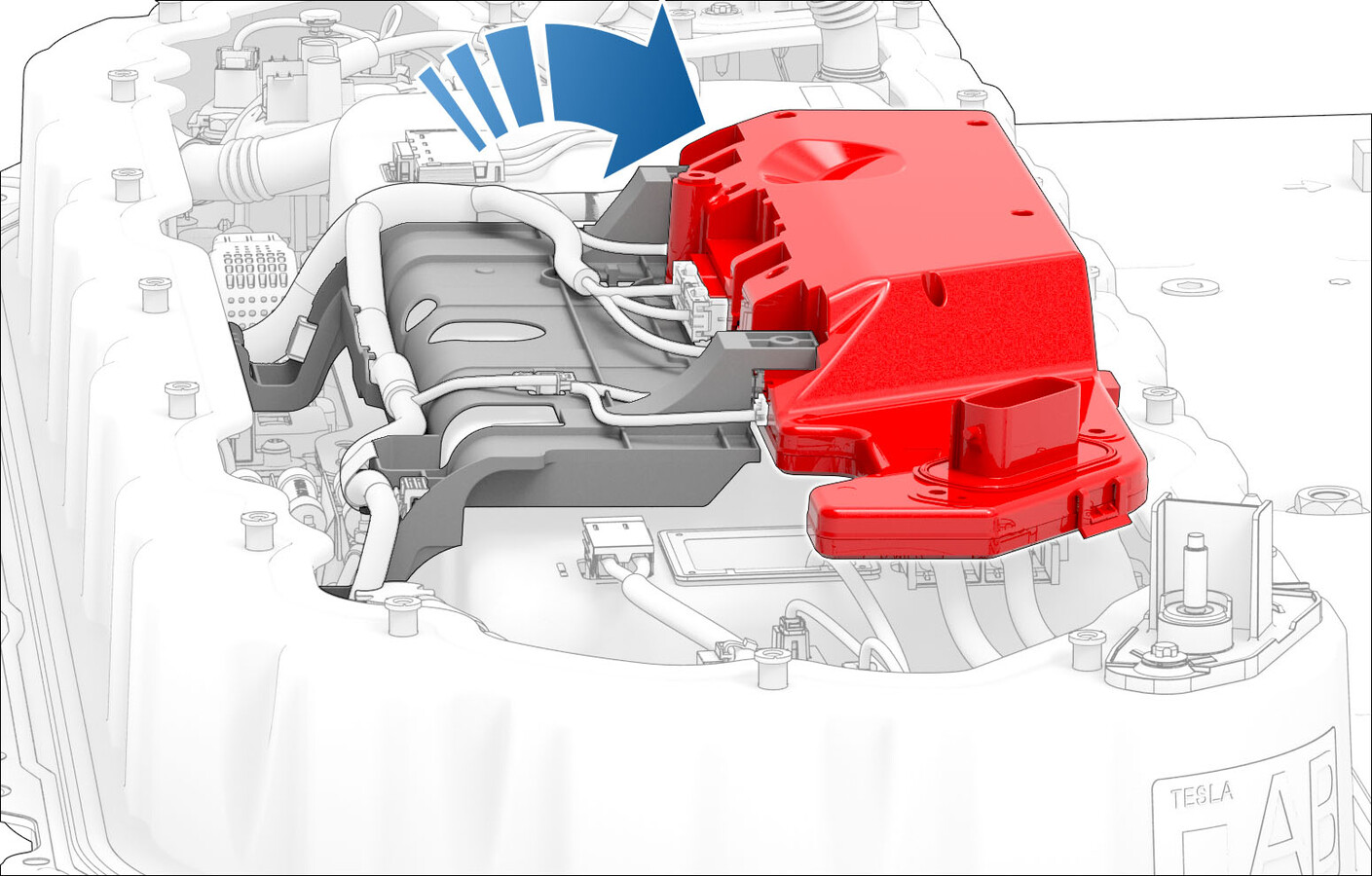 - Remove the bolts that attaches the DCDC ground busbar to the body.