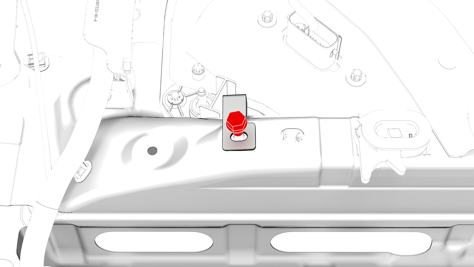 Install the 12V DCDC passthrough into the ancillary bay, install the bolts that attach the 12V DCDC passthrough to the ancillary bay, and then mark the bolts with a paint pen after they are torqued.