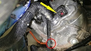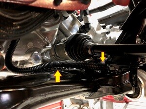 - Release the clips (x2) that attach the front drive unit harness in front of the front subframe.