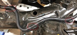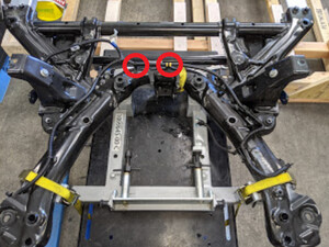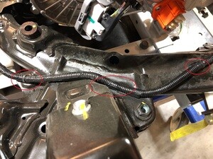- Secure the clips (x2) that attach the front drive unit harness in front of the front subframe.