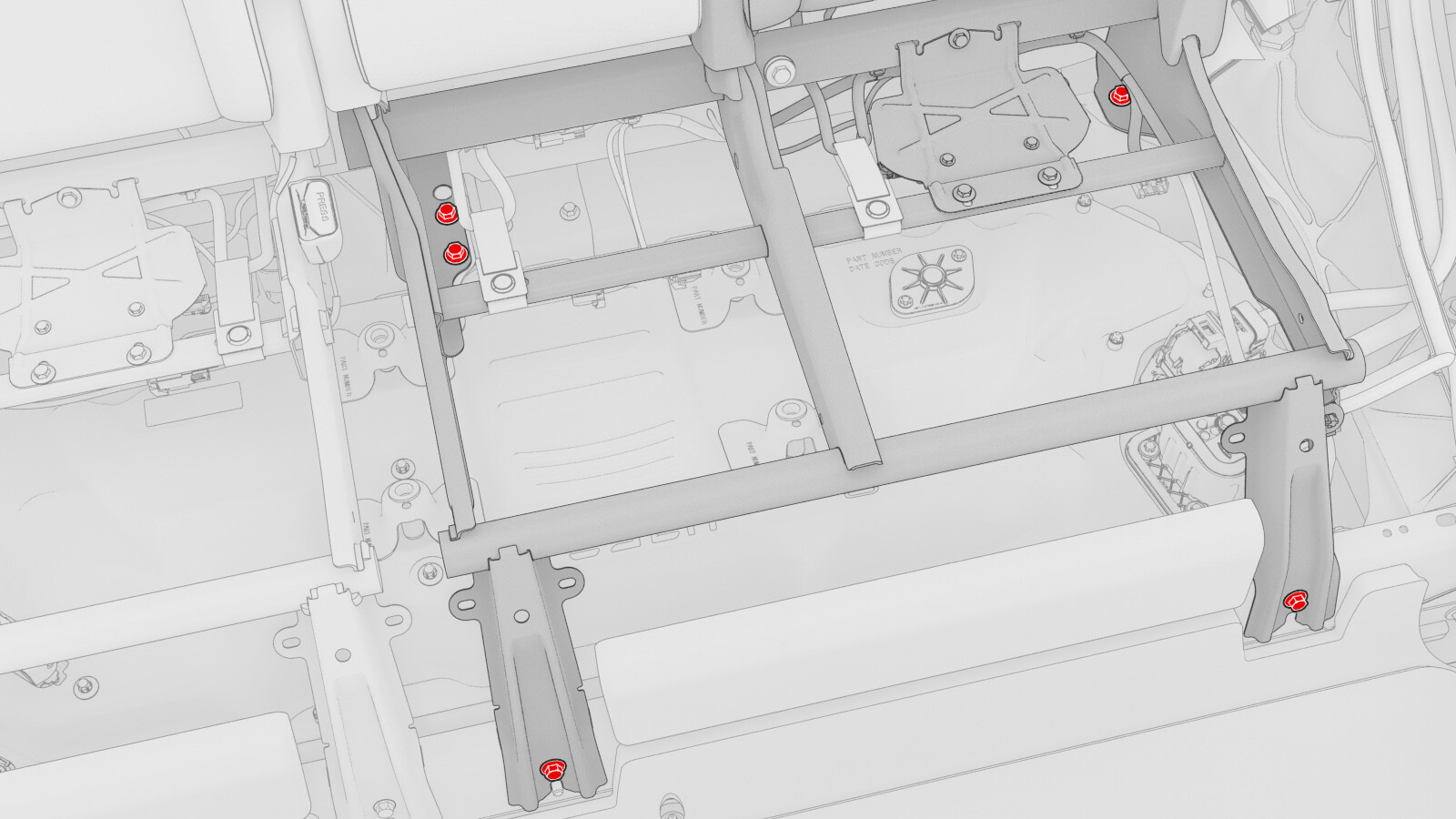 | Bolts (x5) that attach the LH 2nd row seat back frame to the vehicle |