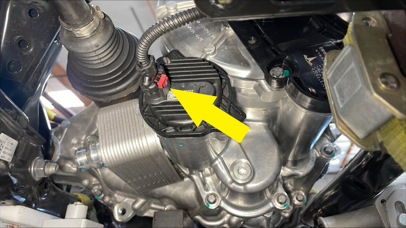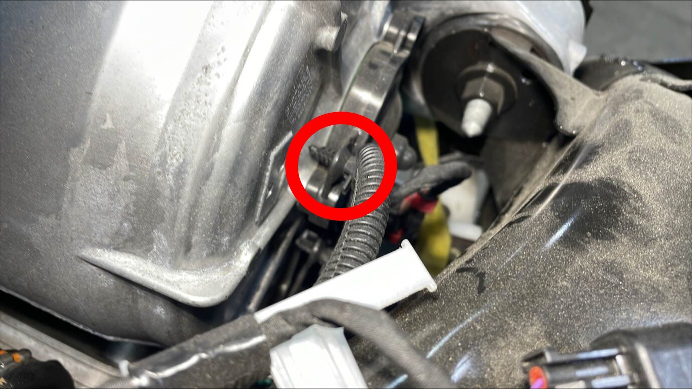 - Release the clip that attaches the rear subframe electrical harness to the rear drive unit inverter.