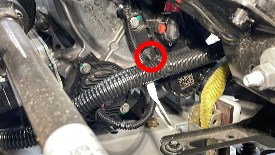 - Remove the bolt that attaches the rear drive unit HV harness bracket to the rear drive unit inverter.
